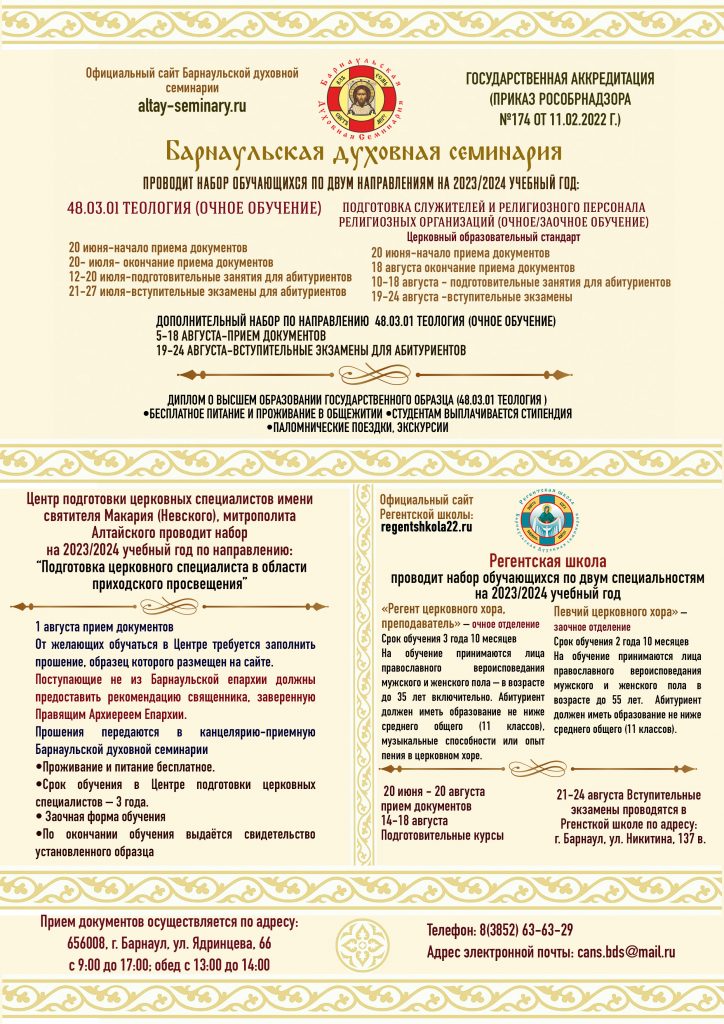 Религиозная организация – духовная образовательная организация высшего образования «Барнаульская духовная семинария Барнаульской Епархии Русской Православной Церкви»
