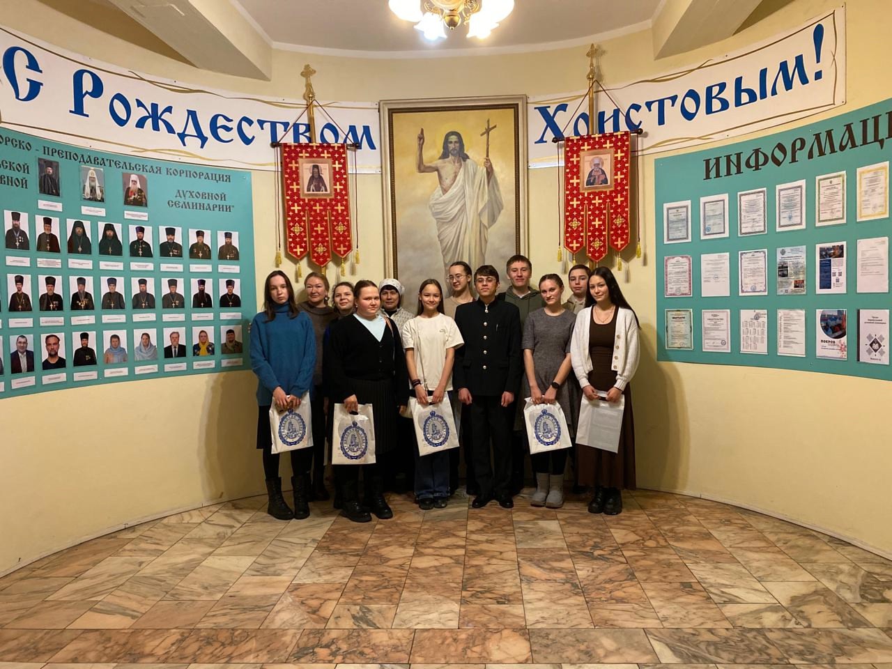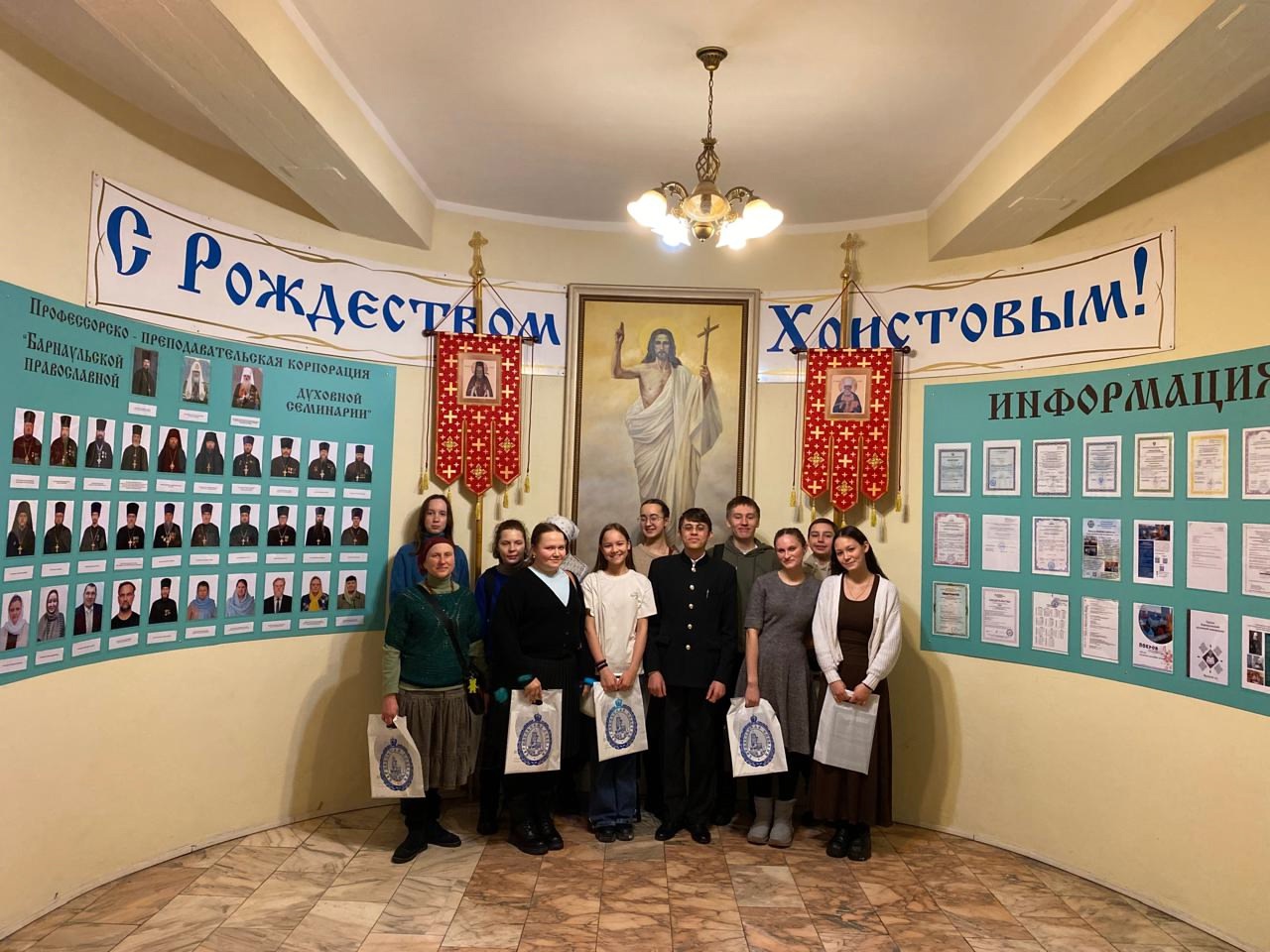9 февраля, в 12.00., Барнаульскую духовную семинарию посетила группа учащихся воскресной школы Никольского храма под руководством завуча школы Бабушкиной Ольги Всеволодовны, а также преподавателя Лангиной Ксении Викторовны — выпускницы Центра подготовки церковных специалистов имени святителя Макария (Невского), митрополита Алтайского. Вместе с учащимися пришли родители.