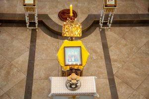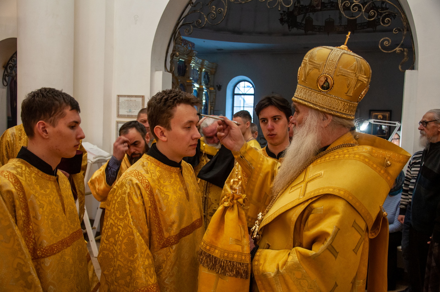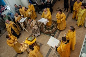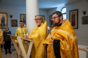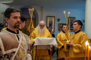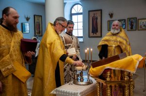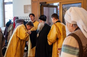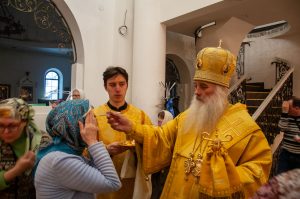 За вечерним богослужением была совершена лития с освящением хлебов, пшеницы, вина и елея. Во время утрени, по прочтении Святого Евангелия, правящий архипастырь помазал освященным елеем верующих.