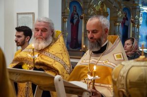 Архипастырю сослужили благочинный Барнаульского городского округа протоиерей Андрей Басов, настоятель храма протоиерей Константин Метельницкий, духовенство благочиния, протодиакон Владимир Черных.