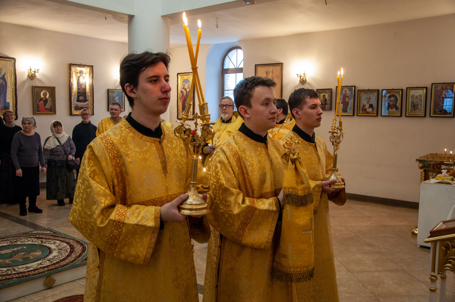 Вечером 11 февраля 2025 года, в канун Собора Вселенских учителей и святителей Василия Великого, Григория Богослова и Иоанна Златоустого, митрополит Барнаульский и Алтайский Сергий совершил всенощное бдение с чтением акафиста в пределе трех святителей храма Живоначальной Троицы г. Барнаула.