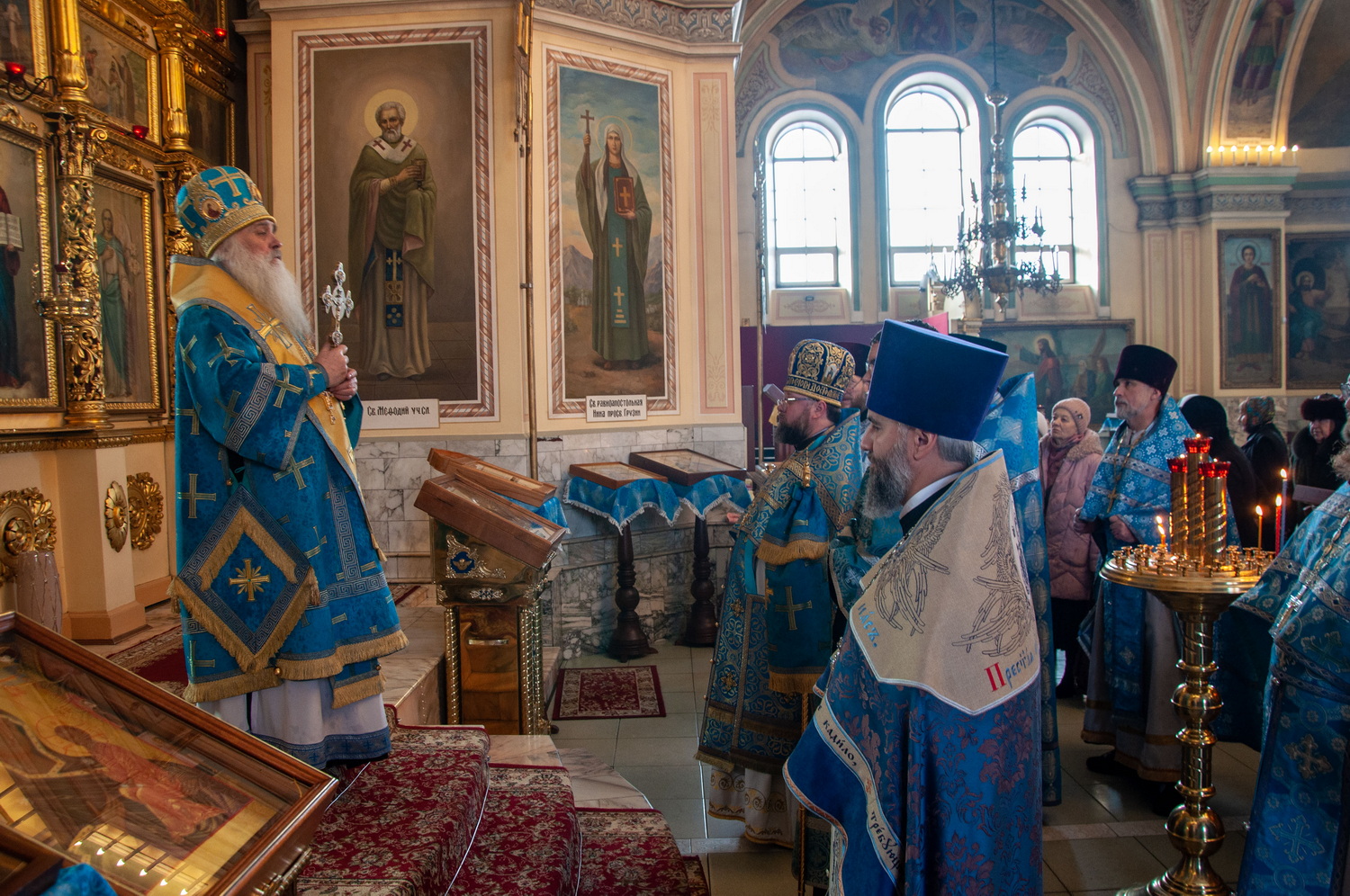 18 февраля 2025 г., в день памяти иконы Божией Матери «Взыскание погибших» в престольный праздник одного из приделов Покровского кафедрального собора митрополит Барнаульский и Алтайский Сергий совершил Божественную литургию.