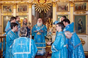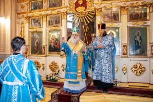 После отпуста Литургии митрополит Сергий поздравил всех присутствующих с праздником и произнес к духовенству и всем молящимся архипастырское слово назидания.