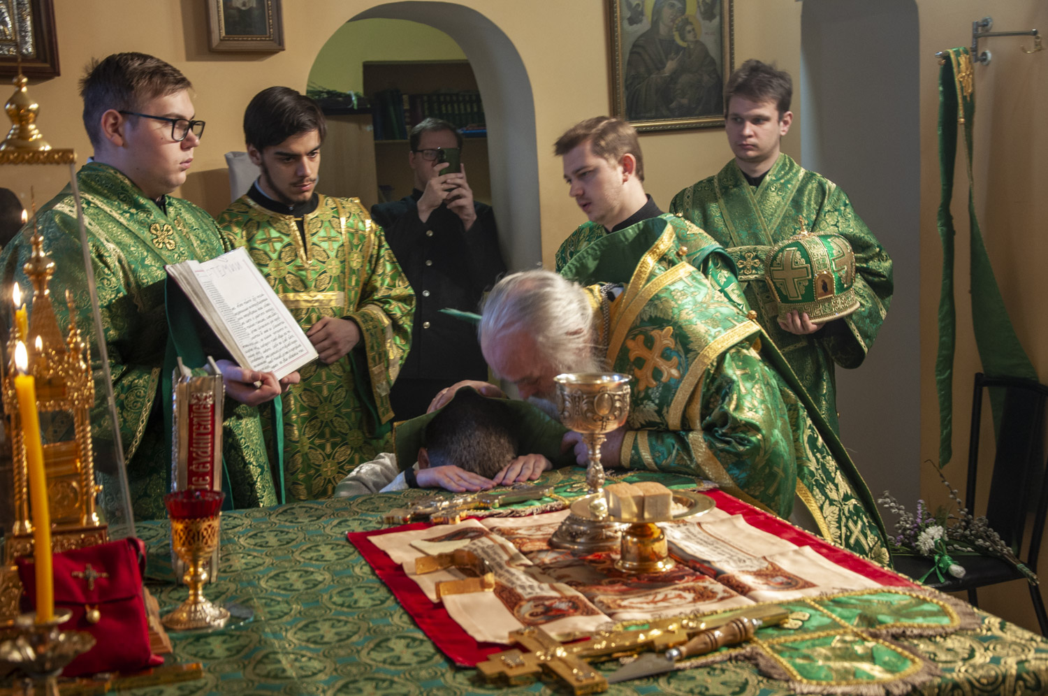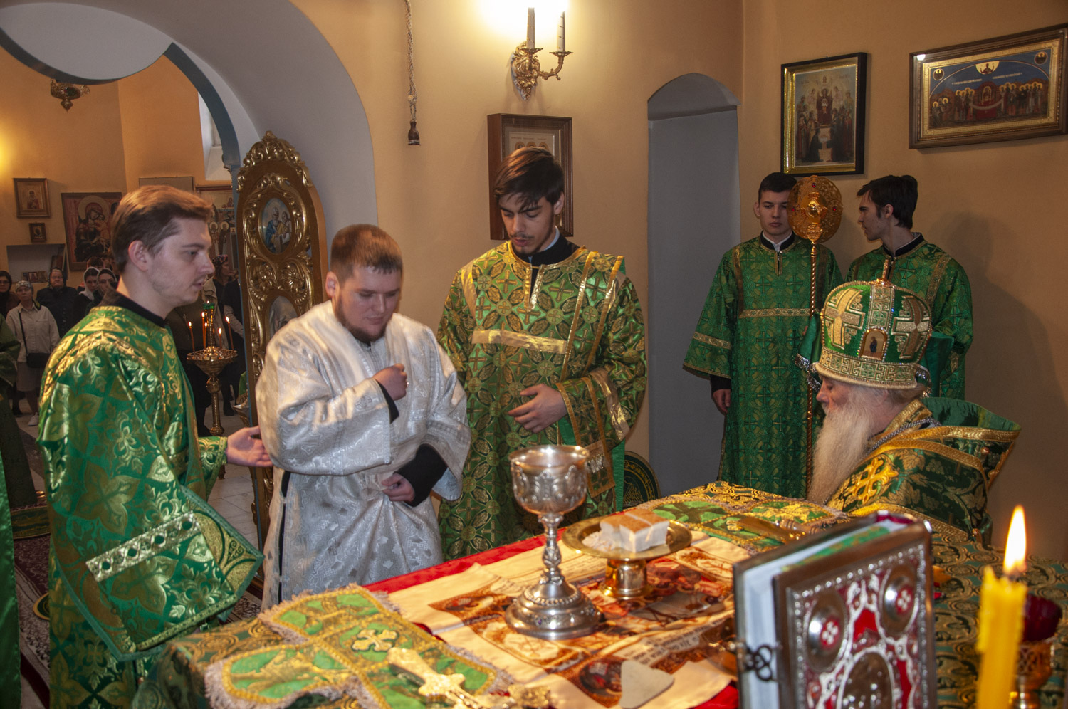 В иподиаконское достоинство были возведены Давыдов Артём и Рыжов Никита. Студент 3 курса Давыдов Артём по Евхаристическом каноне был рукоположен в сан диакона. Хиротесии и хиротонии в Барнаульской духовной семинарии предваряет бесплатный пошив подрясников (перед хиротонией и пошив рясы со скуфьёй).