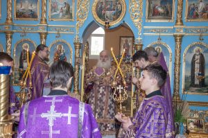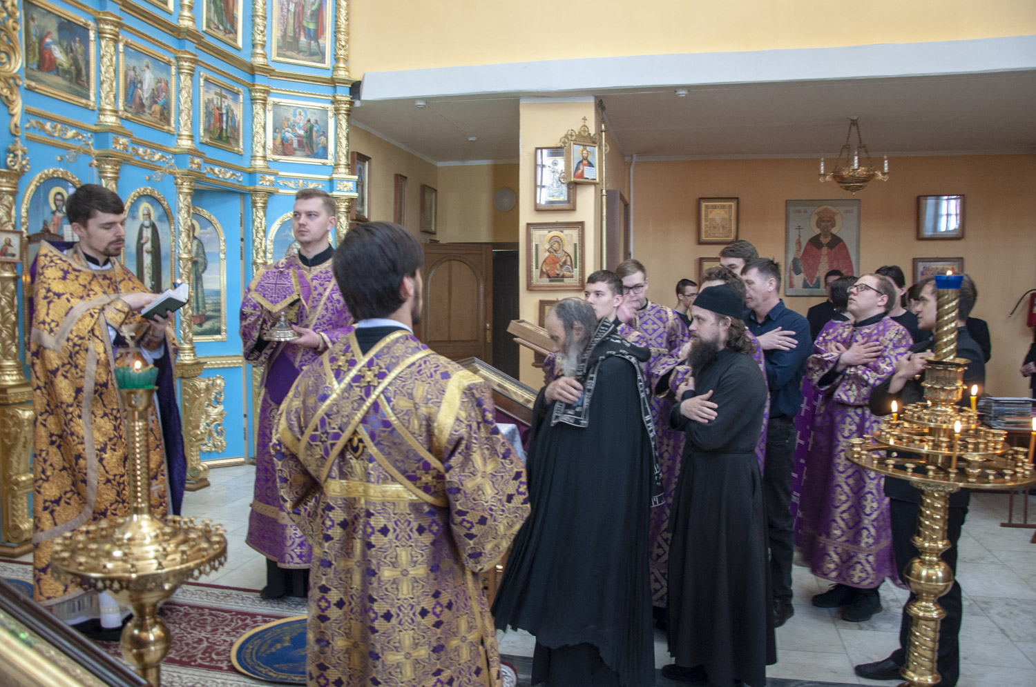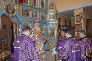 Его Высокопреосвященству сослужили проректор по учебной работе иерей Алексий Изосимов, председатель информационного отдела Барнаульской епархии иеромонах Модест (Илюшин), иерей Антоний Сафонов, руководитель службы протокола Барнаульской епархии диакон Олег Берендеев и диакон Олег Вихлянов.