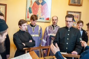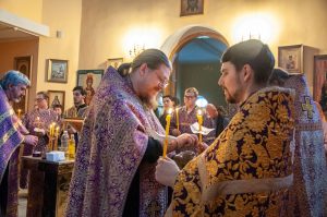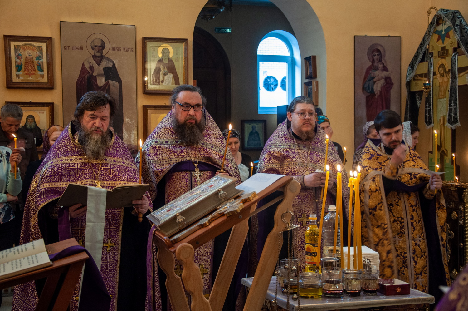 В канун Великого Четверга Страстной седмицы, в Иверском храме Барнаульской духовной семинарии совершено вечернее богослужение. Перед началом богослужения состоялась общая исповедь, а после службы Таинство Соборования (Елеосвящения).