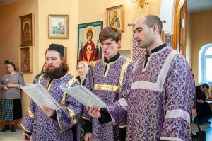 Молитвенные песнопения исполнял мужской хор Барнаульской духовной семинарии под управлением регента иерея Дмитрия Котова.