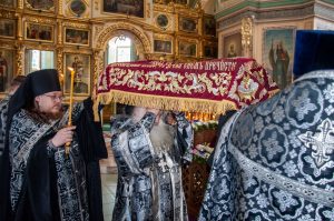 В Великий Пяток Страстной седмицы, день воспоминаний крестных страданий и смерти Господа Иисуса Христа, митрополит Барнаульский и Алтайский Сергий, Глава Алтасйской митрополии, совершил вечерню с чином изнесения Плащаницы Господа нашего Иисуса Христа в Покровском кафедральном соборе Барнаула.
