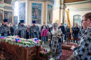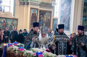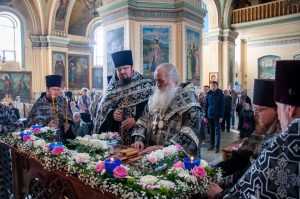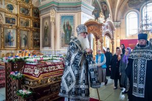 Его Высокопреосвященству сослужили клирики кафедрального собора.
