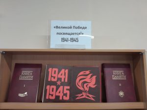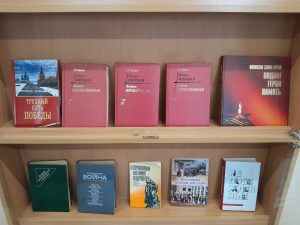 Выставка книг о Великой Отечественной войне знакомит читателей с историческими источниками, архивными материалами, воспоминаниями ветеранов, документами эпохи, классическими произведениями русской литературы, написанными в годы войны – все эти книги помогают формировать мировоззрение молодого поколения, развивать нравственность и духовность.