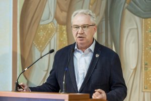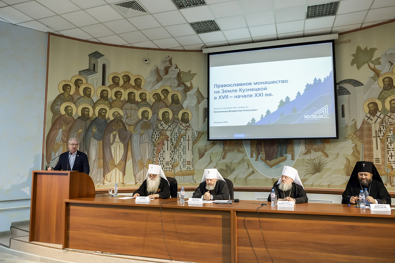 Обзор истории монашества в привязке к территории шахтёрского края в докладе «История православного монашества в Кузбассе» сделал Владислав Алексеевич Овчинников, доцент исторических наук, профессор, председатель Общественной палаты Кемеровской области.