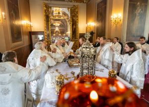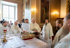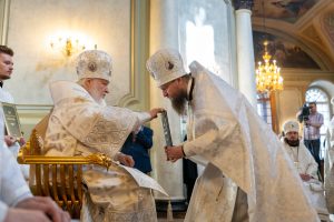 За Литургией была совершена хиротония архимандрита Иоасафа (Вишнякова) во епископа Славгородского и Каменского. Новорукоположенный иерарх, избранный к епископскому служению решением Священного Синода Русской Православной Церкви от 15 мая с.г. (журнал № 34), стал правящим архиереем Славгородской епархии Алтайской митрополии.