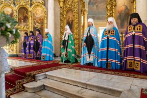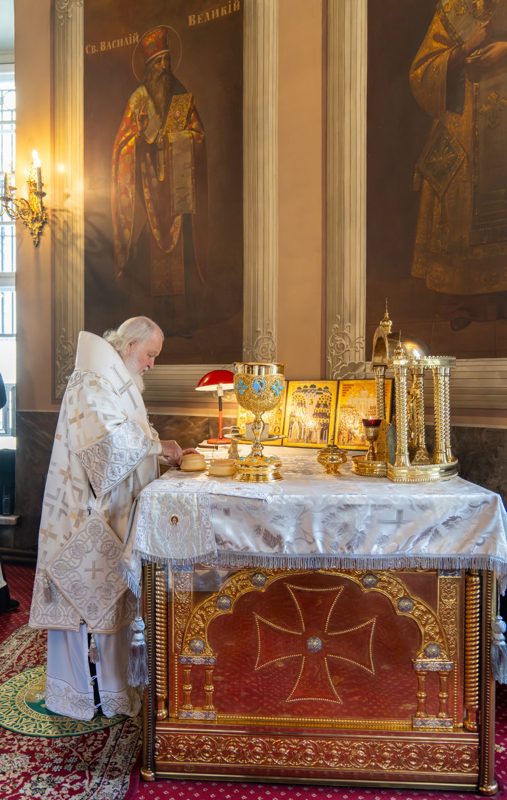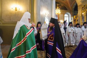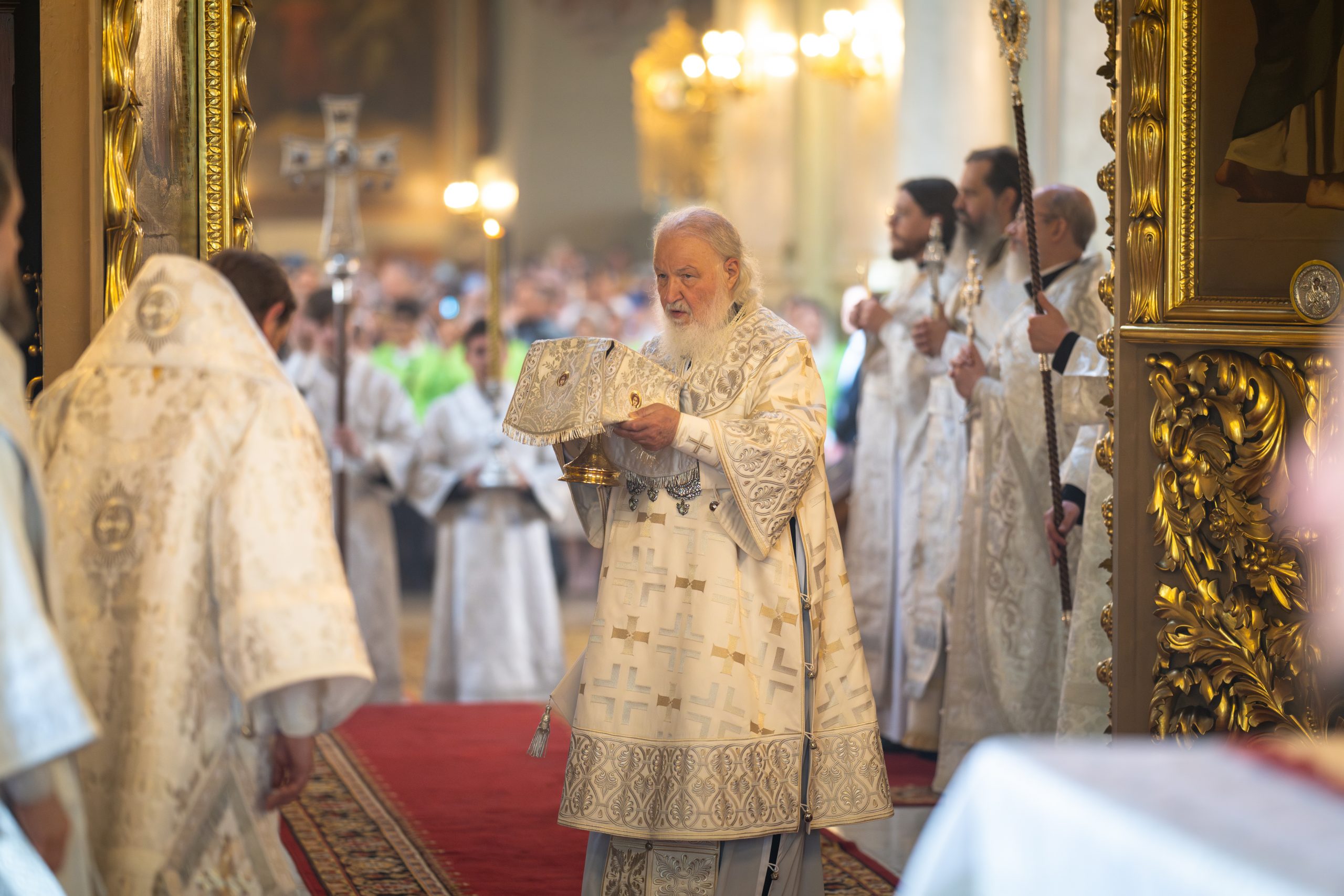 На сугубой ектении были вознесены особые прошения, Предстоятель Русской Церкви прочитал молитву о Святой Руси.