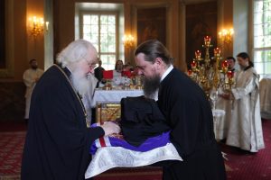По окончании Литургии Святейший Патриарх Кирилл напутствовал епископа Славгородского и Каменского Иоасафа на служение и вручил ему архиерейский жезл. По традиции новорукоположенный иерарх преподал верующим первое архипастырское благословение.