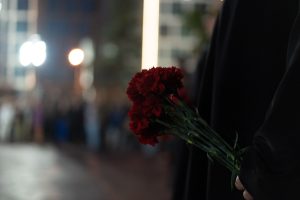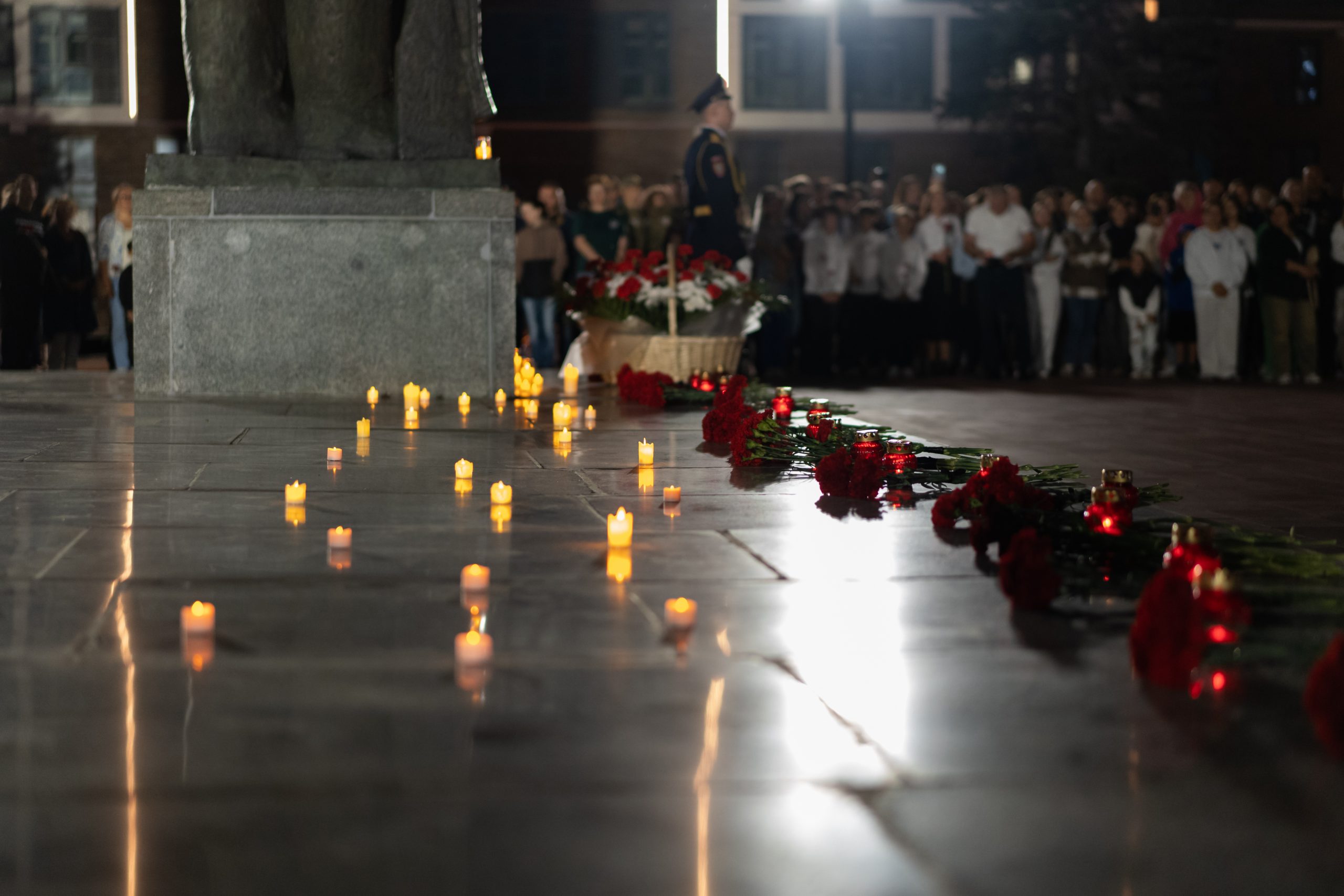 В знак скорби о погибших земляках участники акции возложили цветы и свечи к Мемориалу Славы.