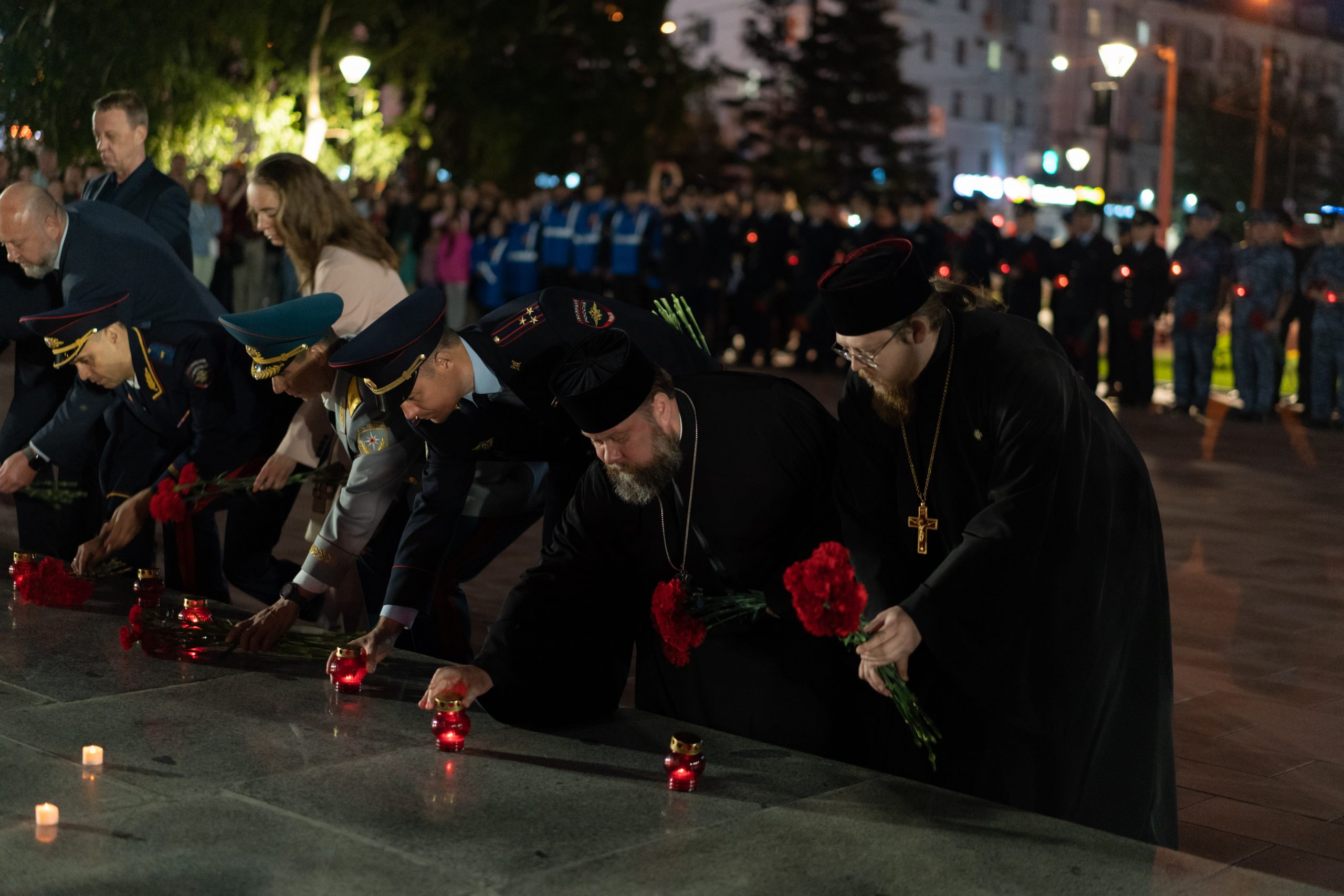 В ней приняли участие заместитель Председателя Правительства Алтайского края Денис Губин, заместитель председателя АКЗС Денис Голобородько, глава города Барнаула Вячеслав Франк, временно исполняющий обязанности начальника Главного управления МВД России по Алтайскому краю генерал-майор полиции Марк Левин, главный федеральный инспектор по Алтайскому краю аппарата Полномочного представителя Президента РФ в СФО Юрий Земский, представители силовых структур, депутаты Барнаульской городской Думы, общественники, секретарь Барнаульской епархии архимандрит Иларион (Морозов), председатель информационного отдела Барнаульской епархии иеромонах Модест (Илюшин) а также участники молодежных и ветеранских организаций, жители краевой столицы.