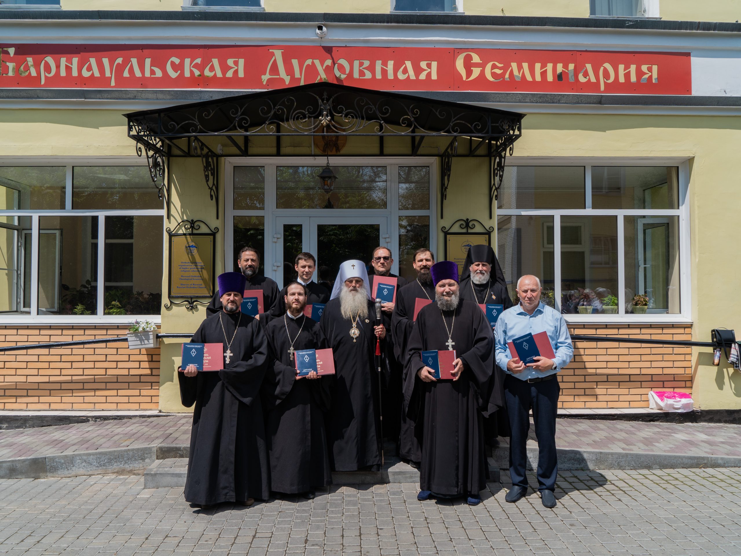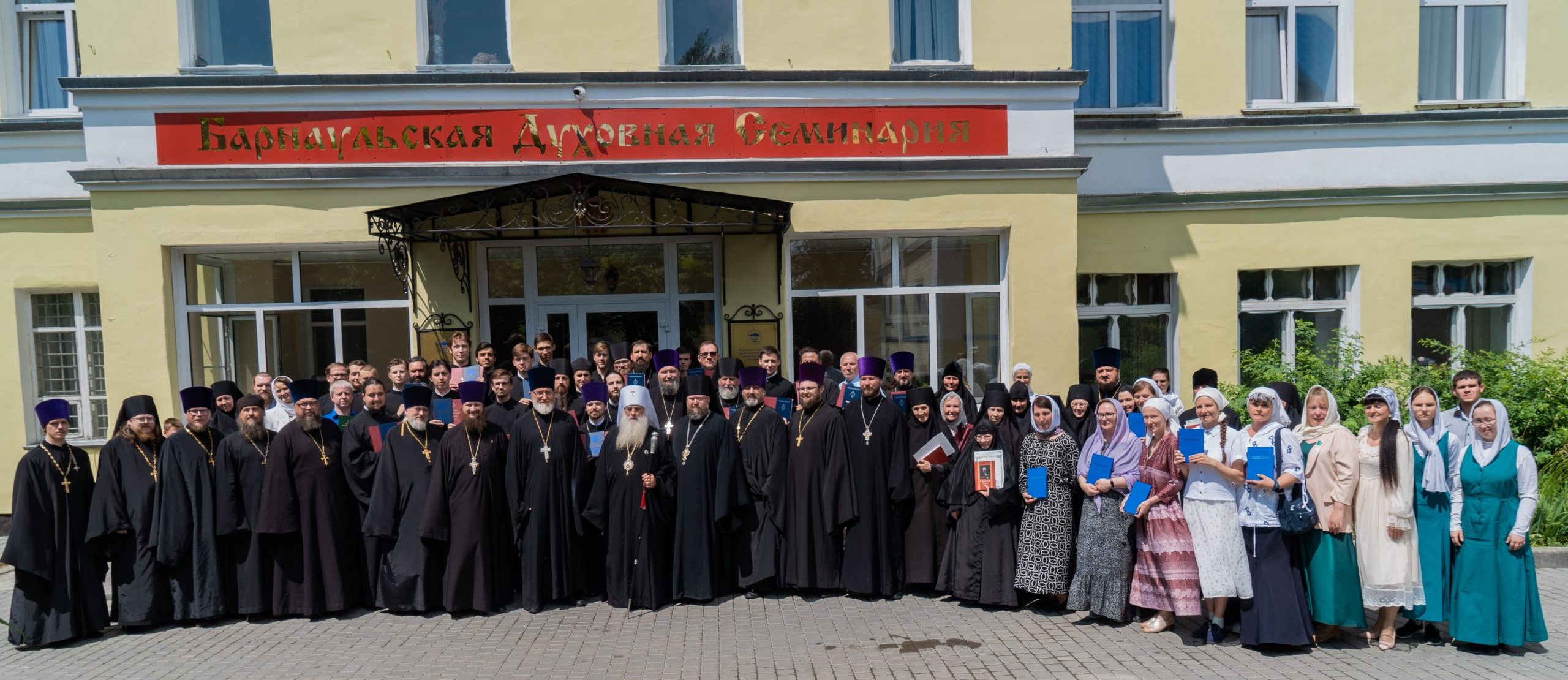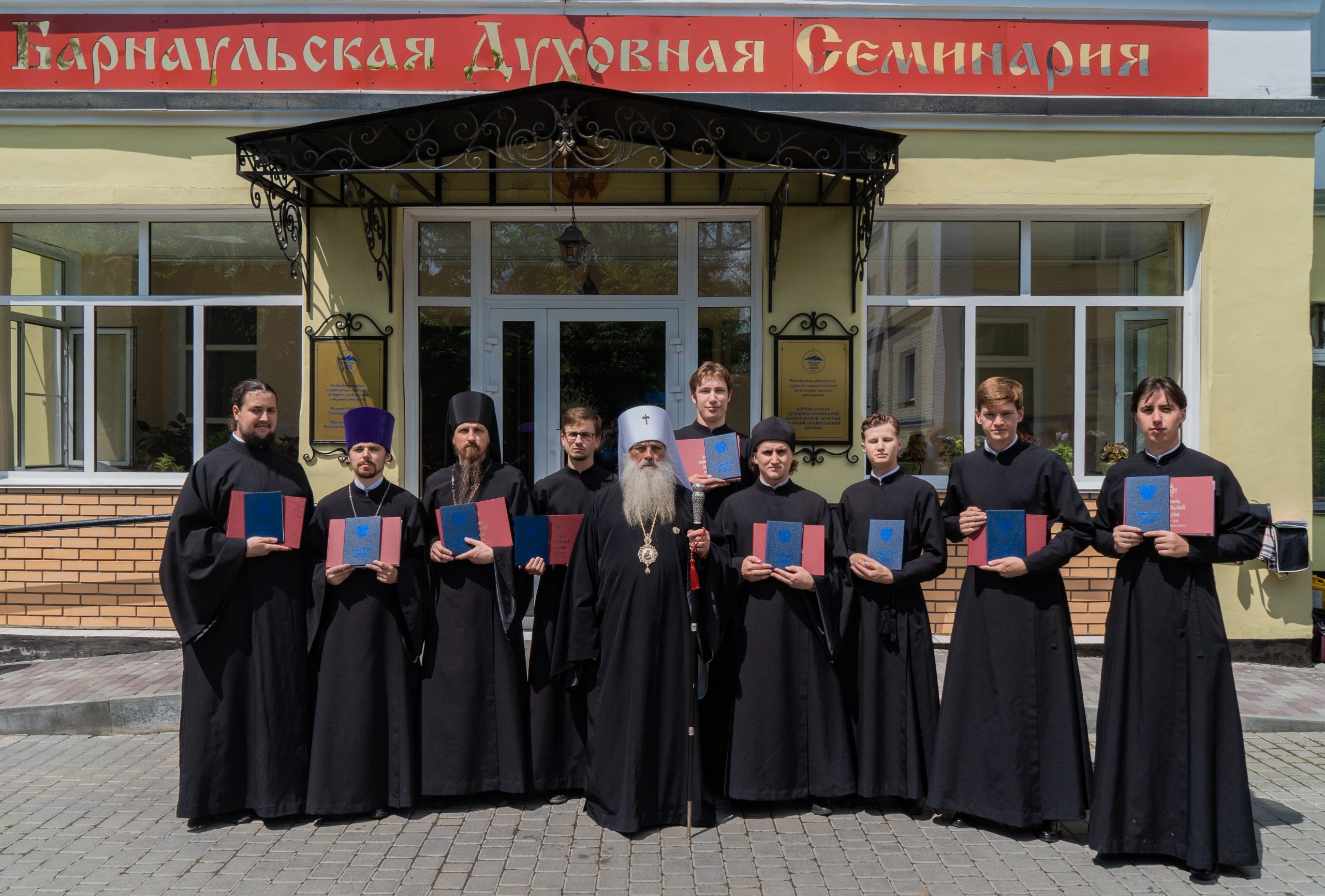 На торжественном выпускном акте Барнаульских духовных школы были заслушаны краткие отчеты подразделений Семинарии, заслушаны представители от выпускных курсов дневного и заочного отделений Семинарии, Регентской школы, Центра подготовки церковных специалистов, Курсов базовой подготовки в области богословия для монашествующих. Каждое направление вручило Владыке памятный подарок. После торжественного вручения дипломов, свидетельств и удостоверений было организовано общее фото, а также фотографирование подразделений по желанию.
