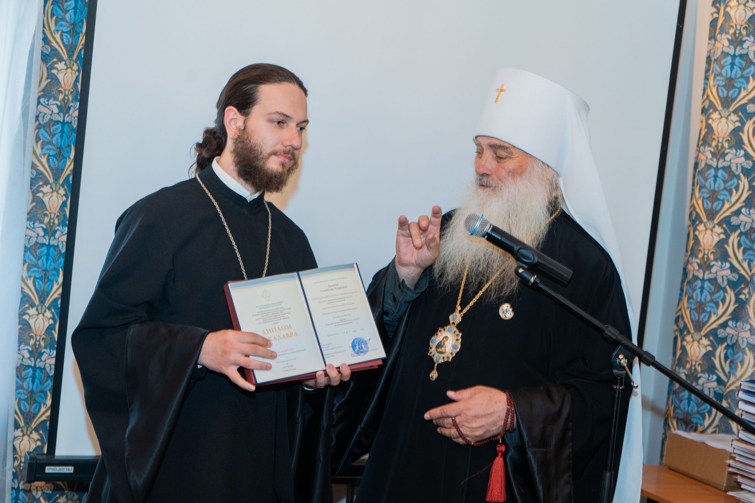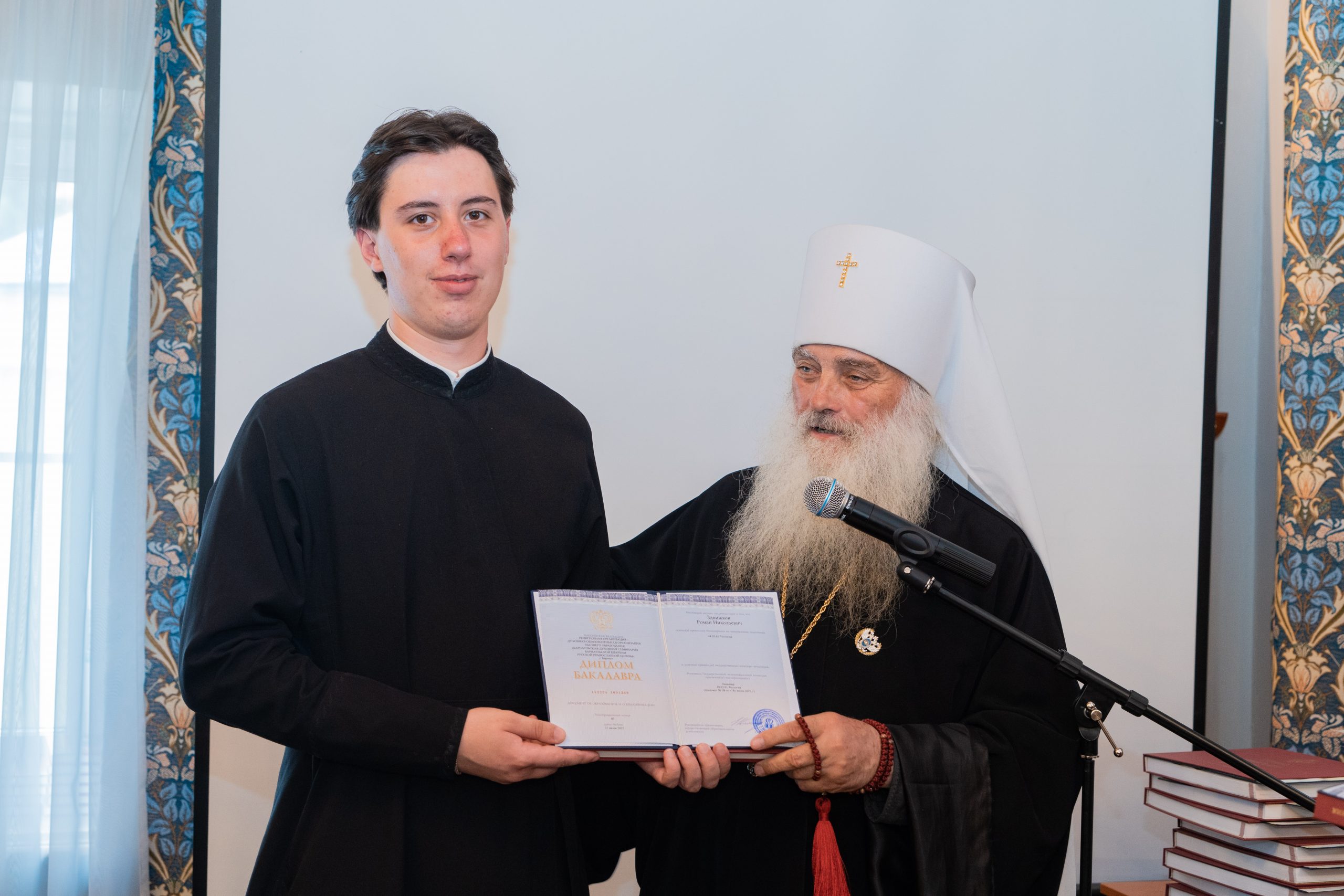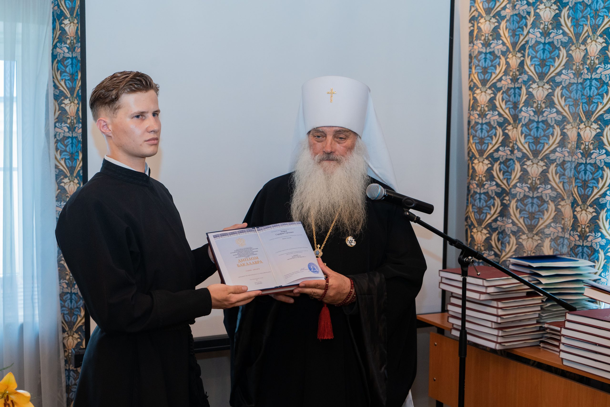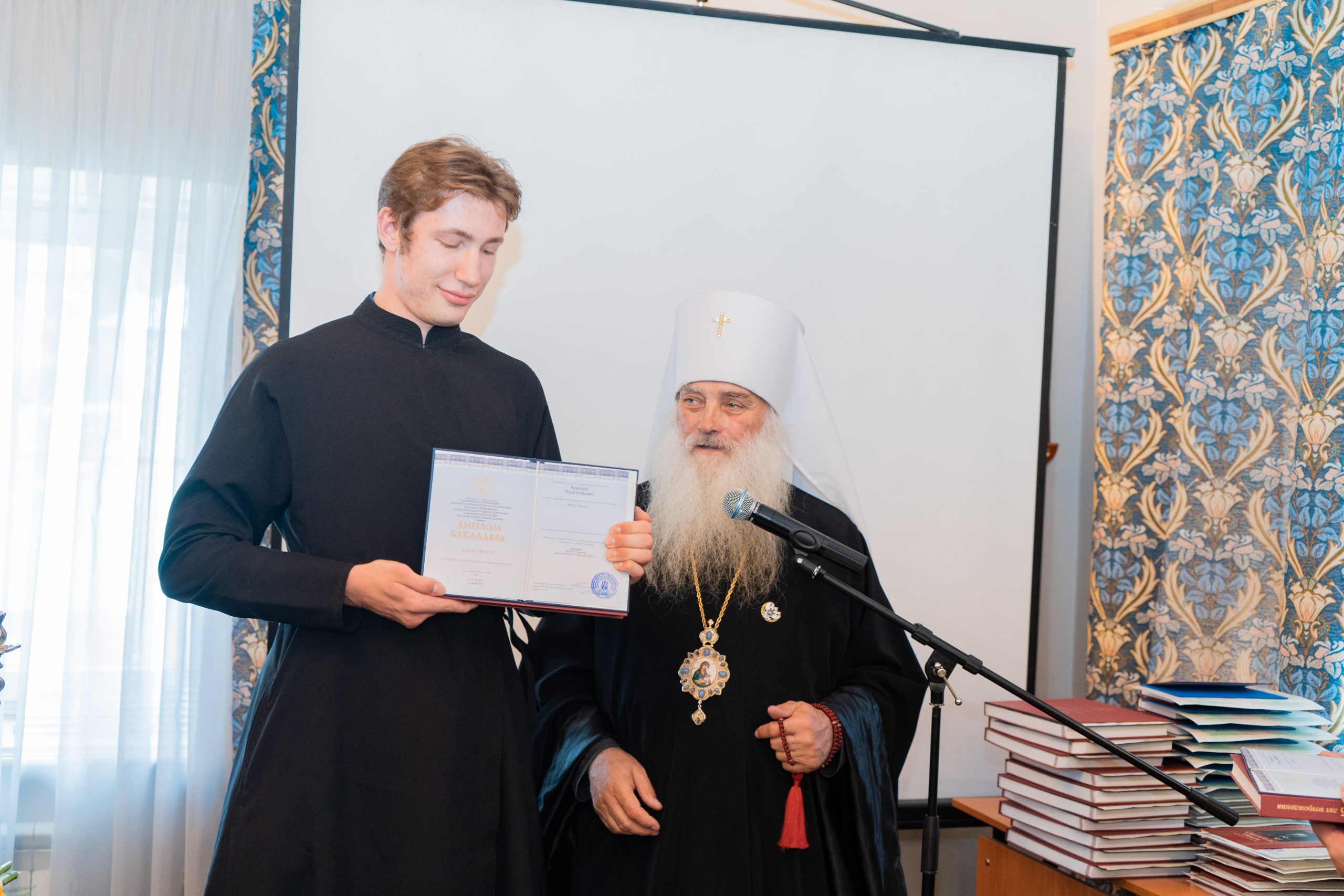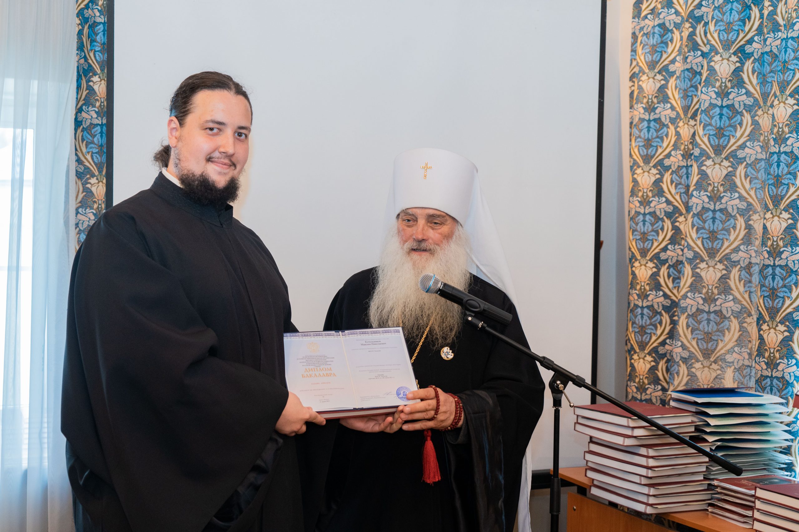 Позади итоговый междисциплинарный экзамен и защита выпускных квалификационных работ. Дневное отделение успешно окончили и получили дипломы бакалавра государственного образца девять выпускников. Заочно отделение окончило 16 выпускников, которые получили диплом бакалавра церковного образца.