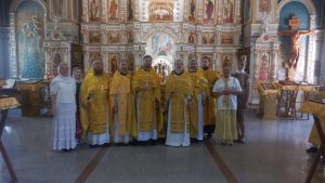 Выпускники в священном сане отслужили Божественную Литургию, которую возглавил протоиерей Иоанн Мельников в сослужении протоиерея Алексия Назарова, протоиерея Михаила Беня, иерея Димитрия Котова, иерея Алексия Изосимова. Диаконское служение совершил диакон Максим Котельников – выпускник Барнаульской духовной семинарии.