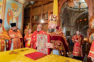 По завершении Литургии отец Иларион поздравил всех присутствовавших за богослужением с днем памяти священномученика Иакова (Маскаева), архиепископа Барнаульского и напомнил о духовном подвиге и призвал всех подражать Его вере.