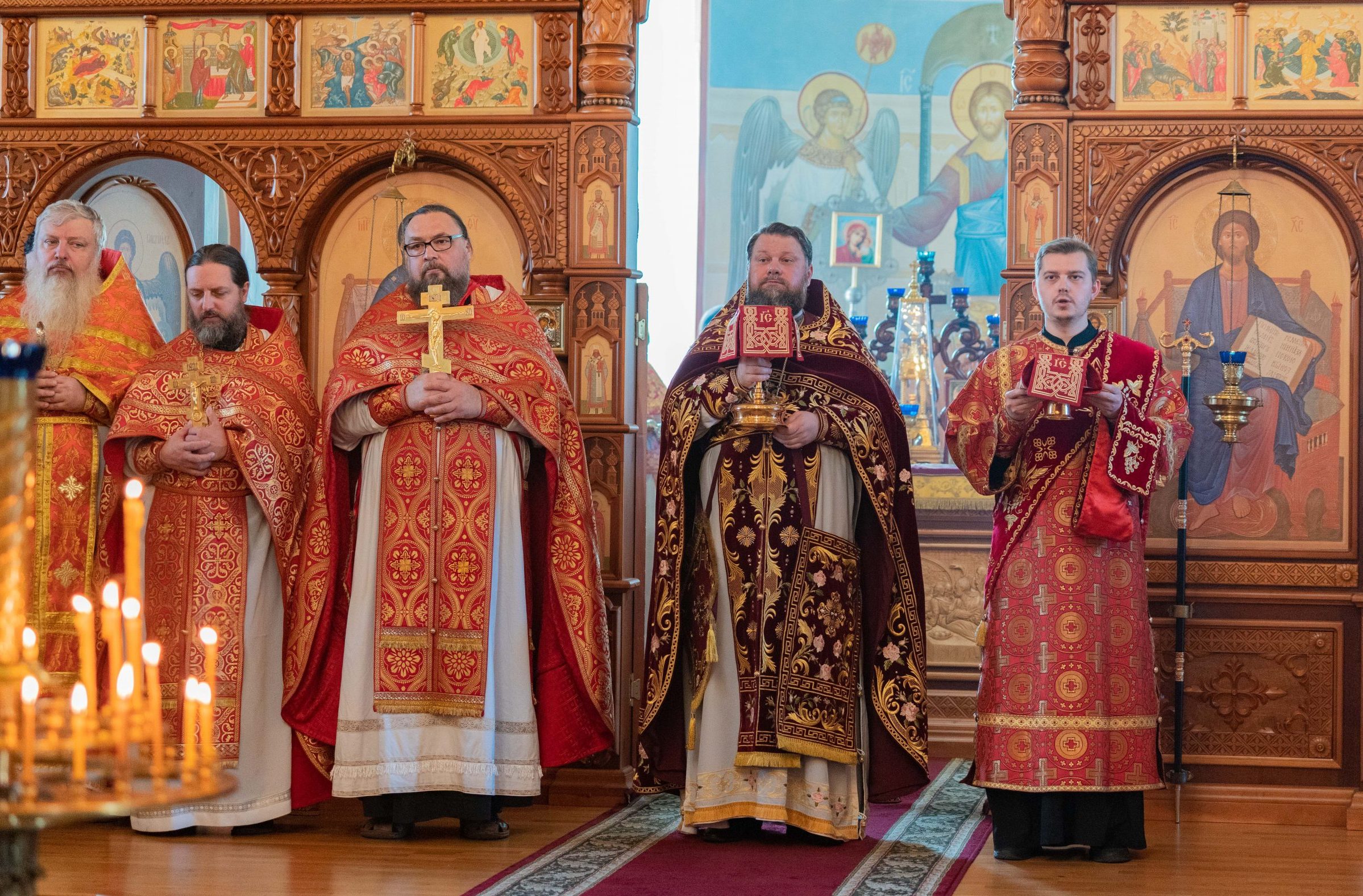 Его высокопреподобию сослужили: духовник Барнаульской духовной семинарии протоиерей Константин Гросс, благочинный монастырей Барнаульской епархии иеромонах Исайя (Жмакин), проректор по учебной работе работе иерей Алексий Изосимов, иерей Сергий Прохоров, иеромонах Филимон (Ивачев), иерей Иоанн Ефимец, иерей Кирилл Вещемов, иерей Сергий Замора, иерей Димитрий Звягин, руководитель службы протокола Барнаульской епархии диакон Олег Берендеев, диакон Константин Филатов, иеродиакон Сергий (Логинов), диакон Никита Рыжов и другие священнослужители епархии.