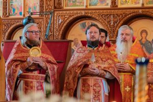 По благословению митрополита Барнаульского и Алтайского Сергия, Божественную литургию возглавил секретарь Барнаульской епархии архимандрит Иларион (Морозов).
