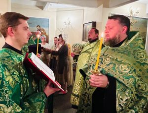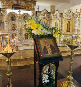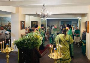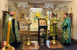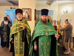 После чтения Евангельского зачала прихожане, благоговейно приложившись к иконе прп. Серафима, были помазаны освященным елеем.