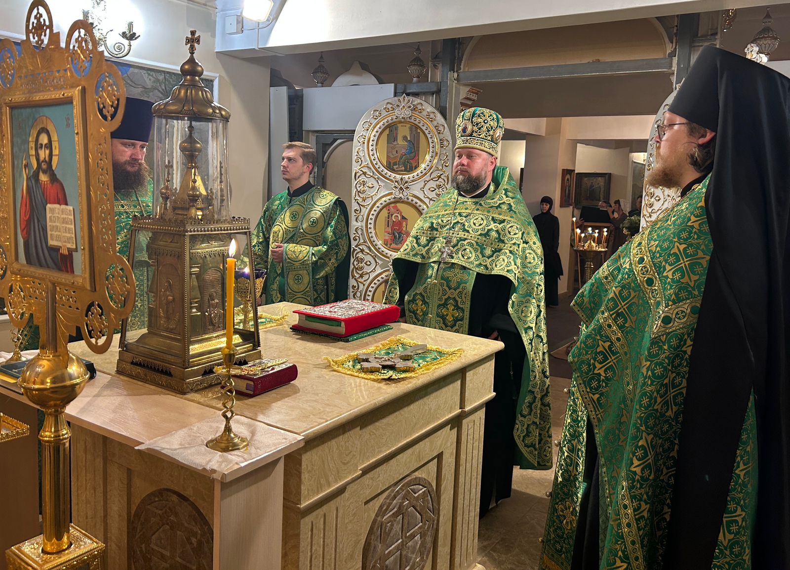 Его высокопреподобию сослужили: врио ректора Барнаульской духовной семинари иерей Анатолий Бочкар, председатель информационного отдела епархии иеромонах Модест (Илюшин), иерей Александр Микушин, иерей Богдан Кириллов, руководитель службы протокола Барнаульской епархии диакон Олег Берендеев и диакон Василий Петров.