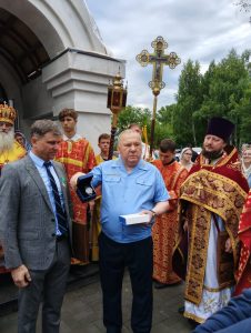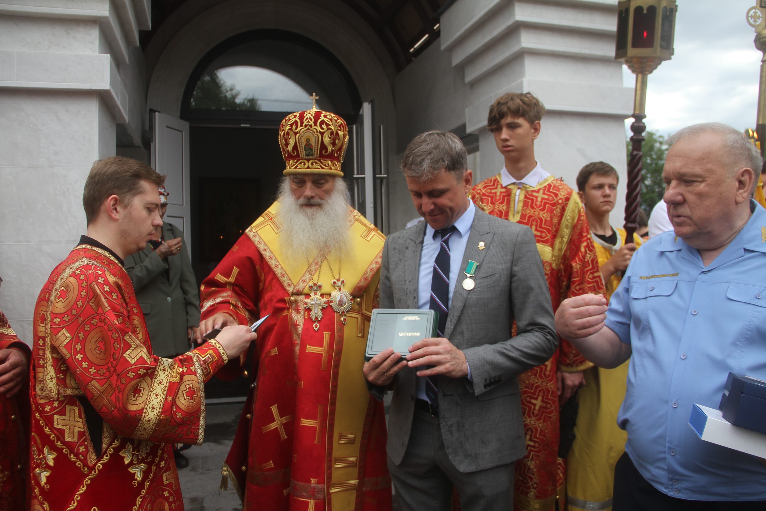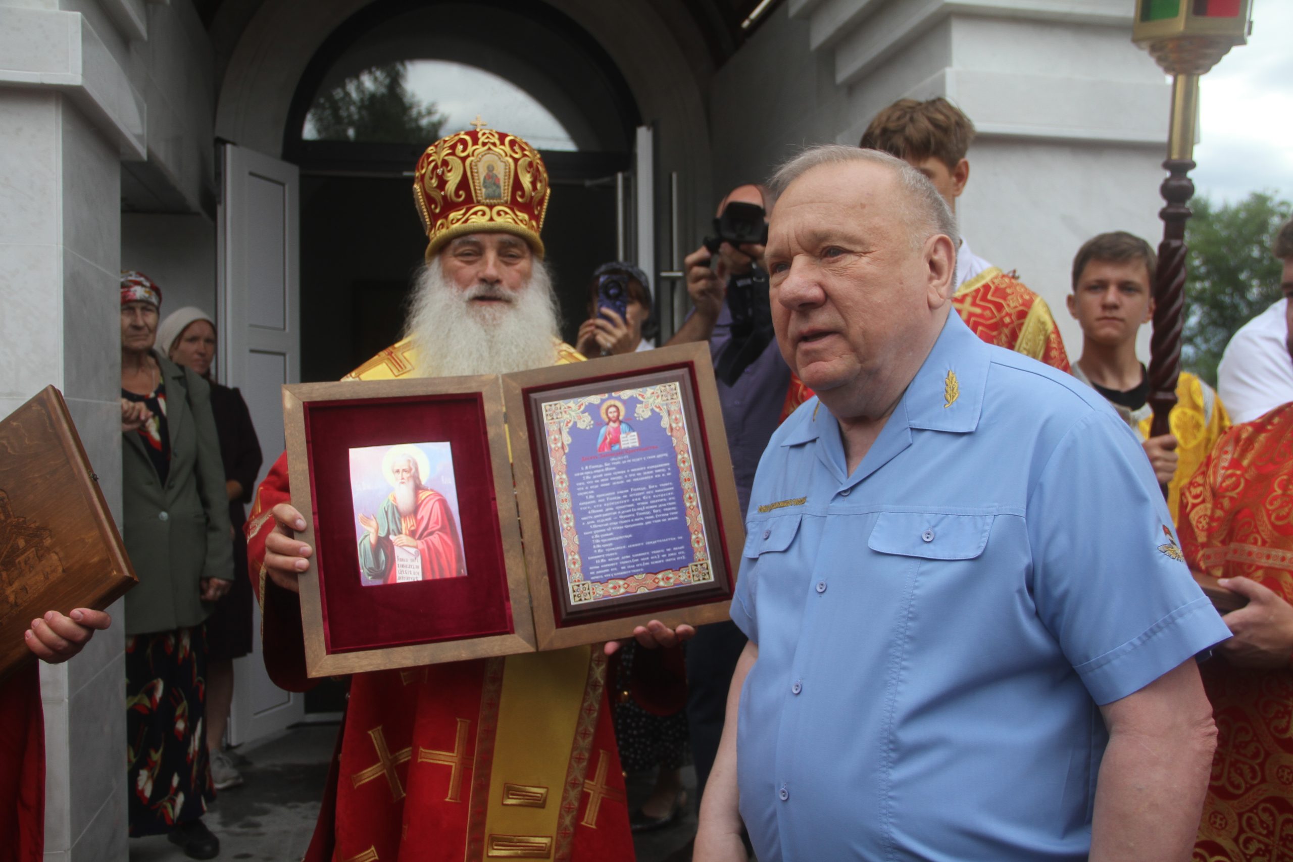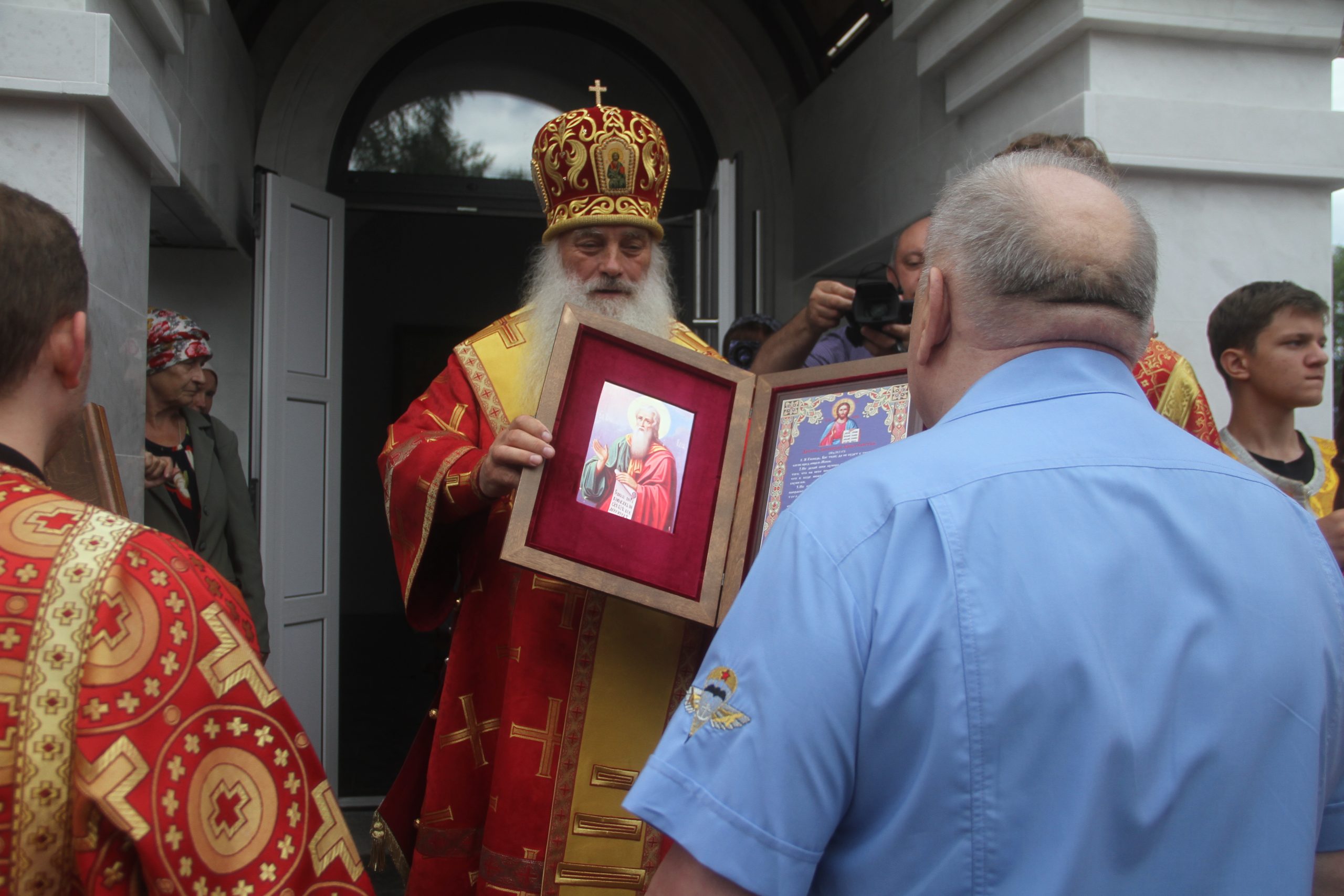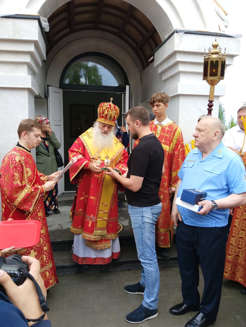 В память о освящении часовни в честь святого пророка Божия Илии, небесного покровителя Воздушно-десантных войск, и 95-й годовщине образования Воздушно-десантных войск Владимир Анатольевич Шаманов преподнес в дар владыке Сергию памятные часы.
