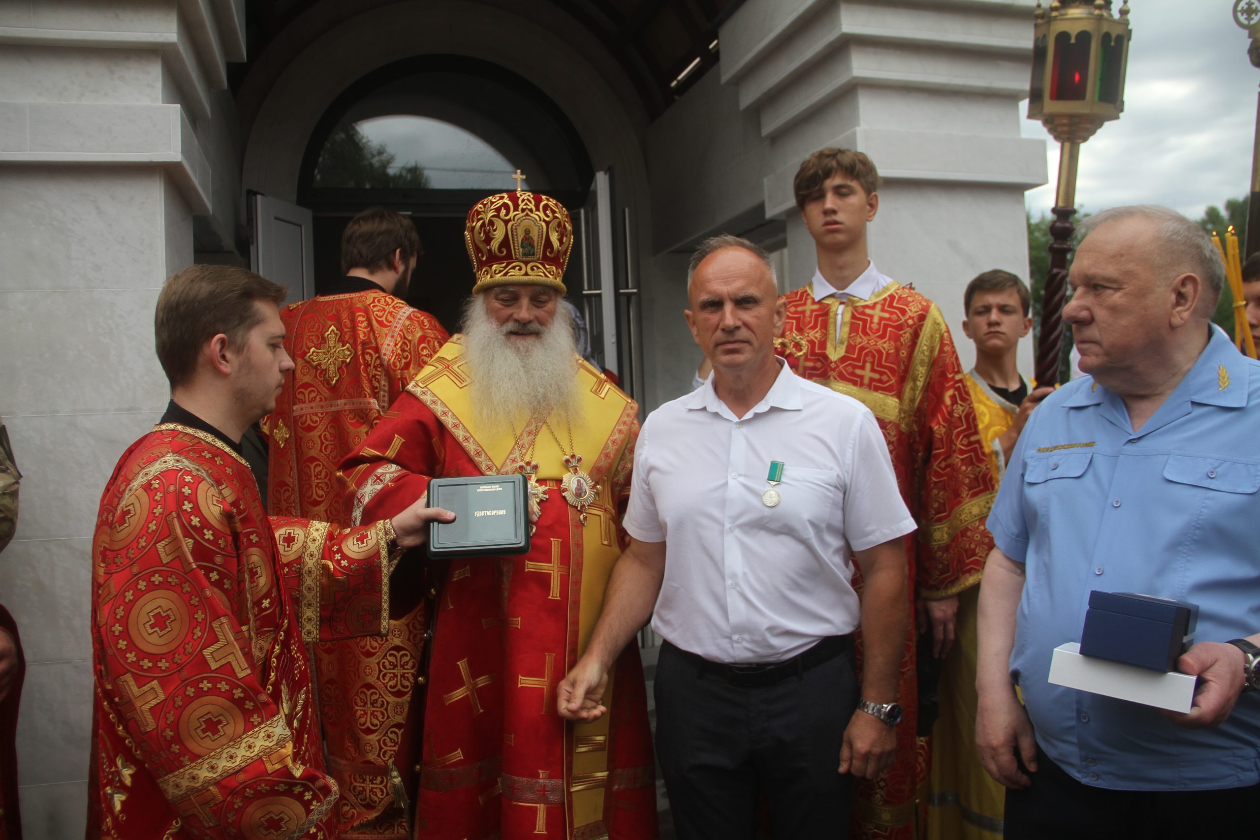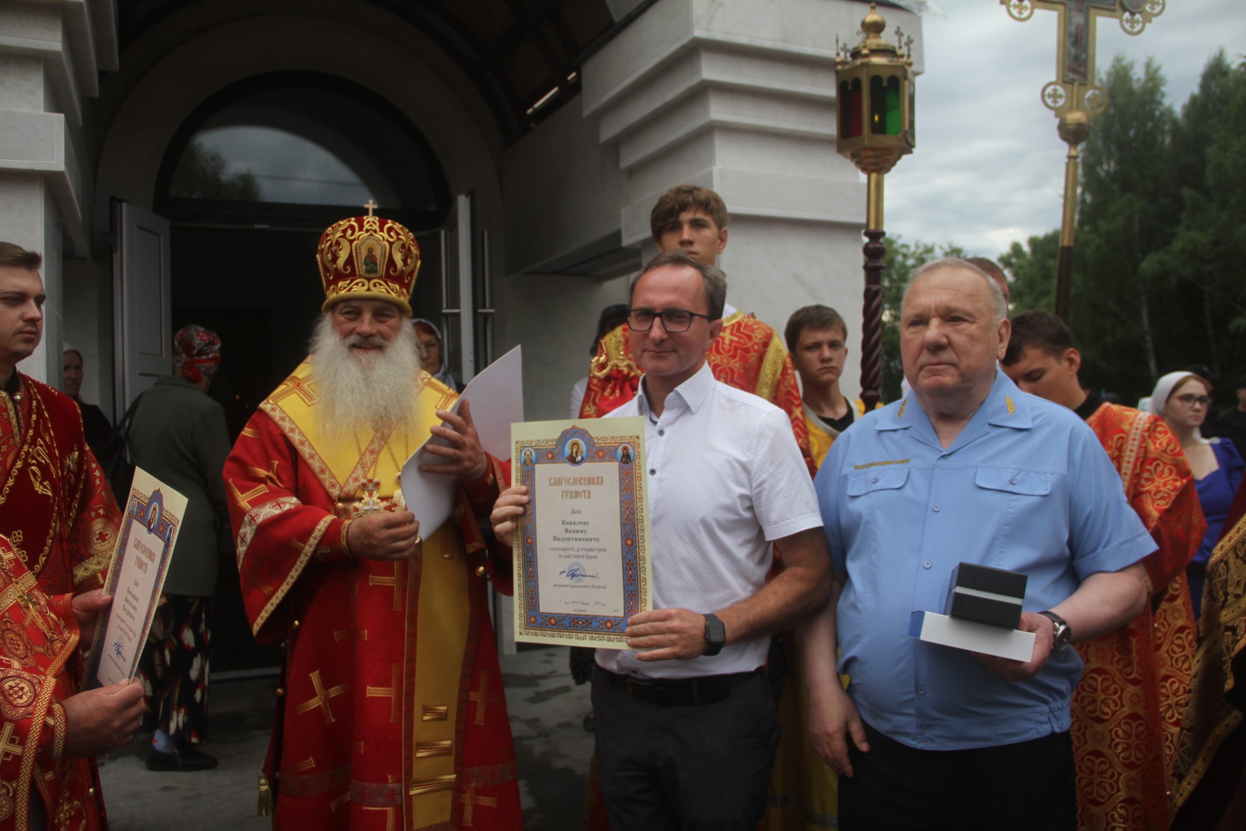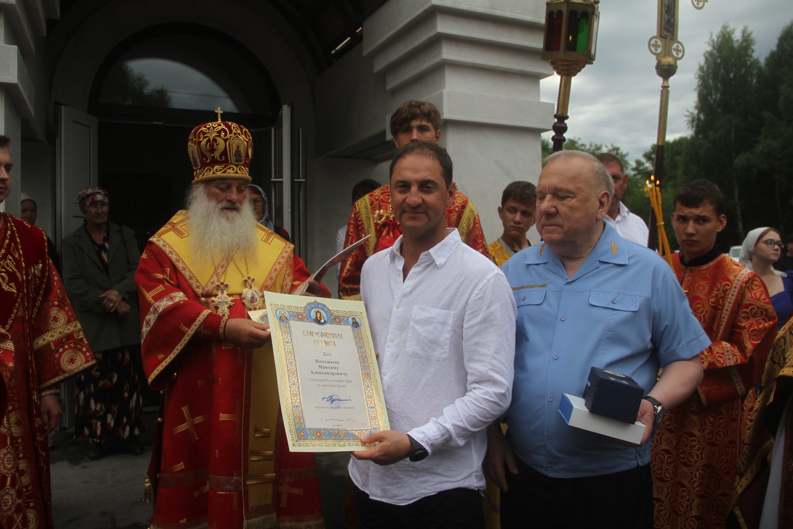 Во внимание к трудам на благо Святой Христовой Церкви митрополит Сергий отметил наградами Барнаульской епархии ктиторов часовни: медалью святителя Макария, просветителя Алтая, II степени—Иваншина Андрея Константиновича и Лисовского Сергия Ивановича.
