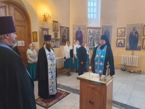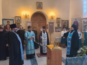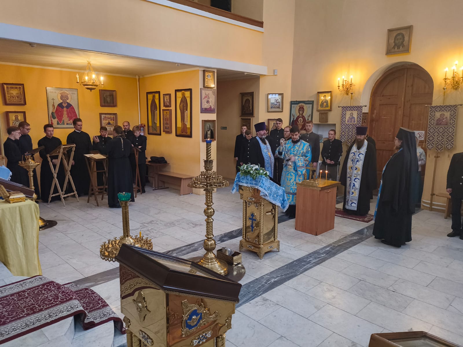 Его преподобию сослужили проректор по учебной работе иерей Алексий Изосимов, старший помощник проректора по воспитательной работе иеромонах Модест (Илюшин) и студент 3 курса диакон Олег Вихлянов.