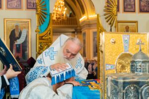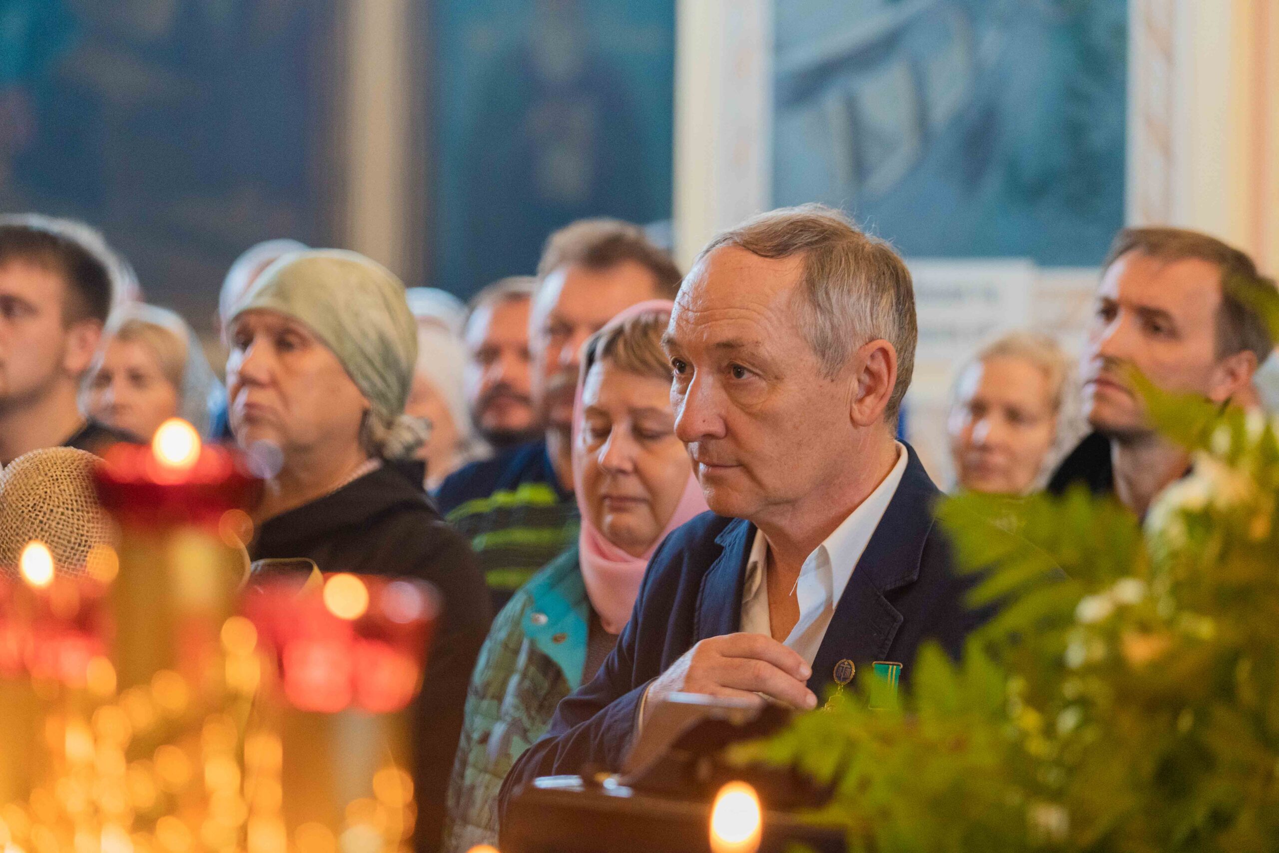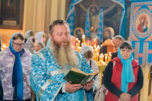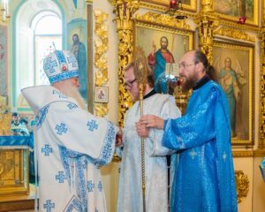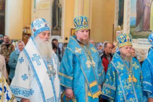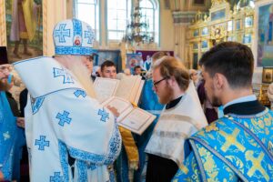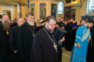 На сугубой ектении были произнесены прошения: «…о еже прияти молитвы нас недостойных рабов Твоих в сию годину испытания, пришедшую на Русь Святую…» и прошение «о Преосвященных архипастырях, пастырях, монашествующих и мирянах земли Украинския, о единстве Церкви Христовы ревнующих, в заточении и гонениях сущих». Затем епископ Иоасаф вознес молитву о Святой Руси.