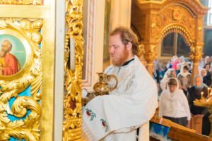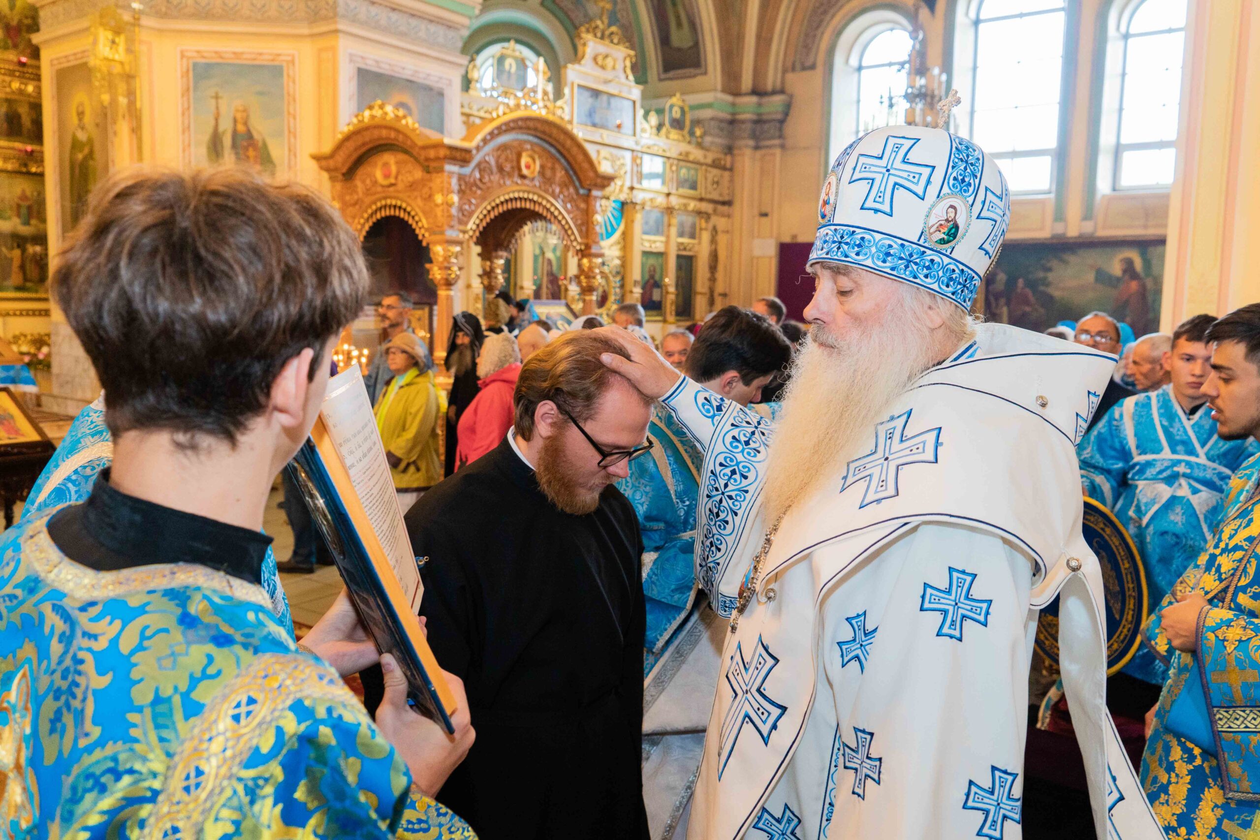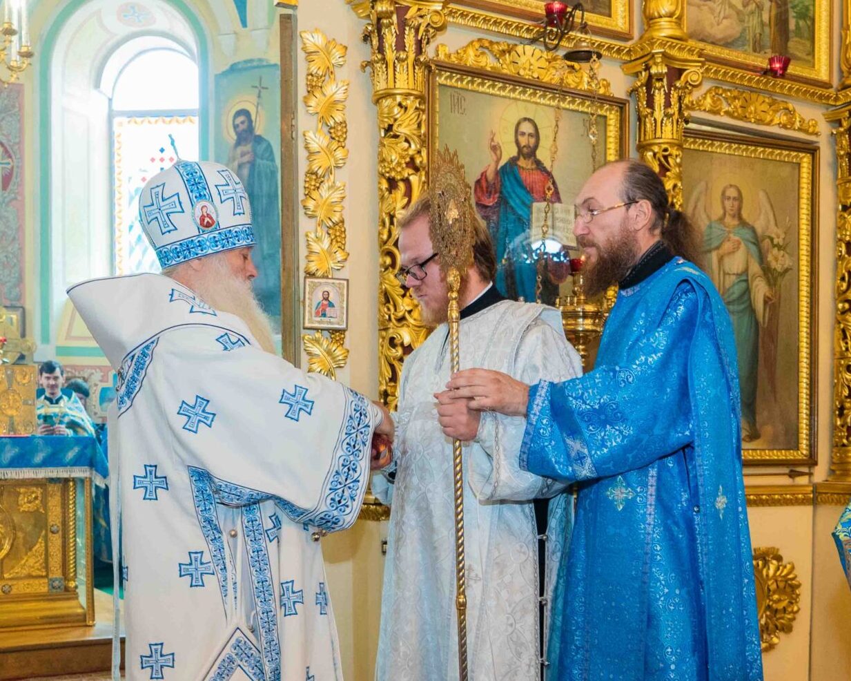 По освящении Святых Даров и возгласа «И да будут милости…» Правящий Архиерей совершил рукоположение студента 3 курса Барнаульской духовной семинарии иподиакона Евгения Максимова во диакона. После приобщения Святых Христовых Таин митрополит Сергий обратился к новорукоположенному диакону Евгению со словом архипастырского назидания.