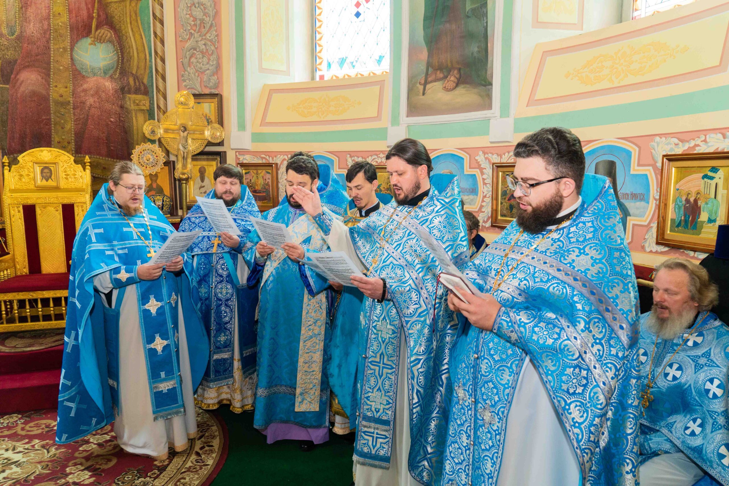 Архипастырю сослужили: архиепископ Бежецкий и Удомельский Каллистрат, епископ Бийский и Белокурихинский Серафим, епископ Рубцовский и Алейский Роман, епископ Славгородский и Каменский Иоасаф, епископ епископ Горноалтайский и Чемальский Макарий, секретарь Барнаульской епархии архимандрит Иларион (Морозов), благочинный Барнаульского городского округа протоиерей Андрей Басов, первый проректор Барнаульской духовной семинарии протоиерей Георгий Крейдун, благочинный Заринского округа протоиерей Андрей Ушаков, благочинный Тальменского округа иеромонах Гавриил (Трофимов), благочинный Белоярского округа протоиерей Вячеслав Данькин, ключарь кафедрального собора протоиерей Максим Спиненко, эконом Барнаульской епархии иерей Константин Алексеев, благочинный Барнаульского пригородного округа иерей Дионисий Рейм, председатель информационного отдела иеромонах Модест (Илюшин), руководитель службы протокола Барнаульской епархии иерей Олег Берендеев, иерей Михаил Ралдугин, иерей Тимофей Самодинов, иерей Павел Русаков, протодиакон Владимир Черных, диакон Олег Вихлянов, руководитель отдела по взаимоотношениям Церкви с обществом и СМИ Славгородской епархии диакон Михаил Межовиков и диакон Константин Гавло.
