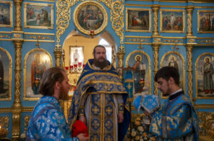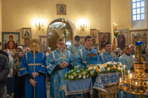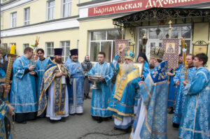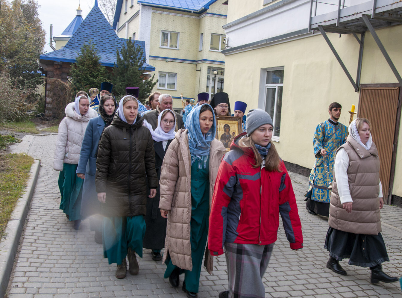 По завершении Божественной Литургии соборно был совершен праздничный молебен и крестный ход вокруг храма и семинарии. Священнослужители окропляли молящихся святой водой и осеняли чтимым храмовым образом Иверским Божией Матери. «Пресвятая Богородице, спаси нас!» — с глубоким молитвенным чувством взывали клирики и все богомольцы с верой и упованием на благодатную помощь Заступницы Усердной рода христианского.