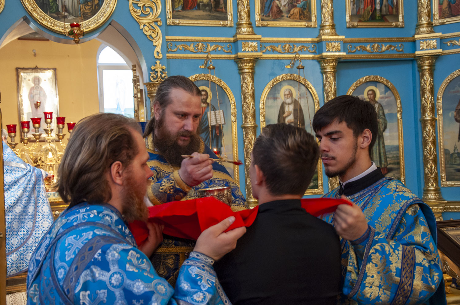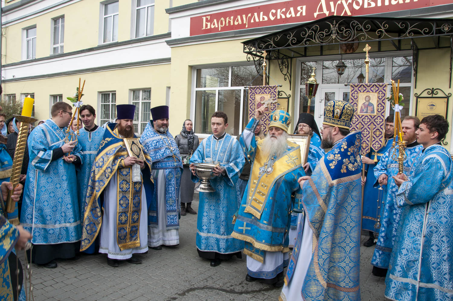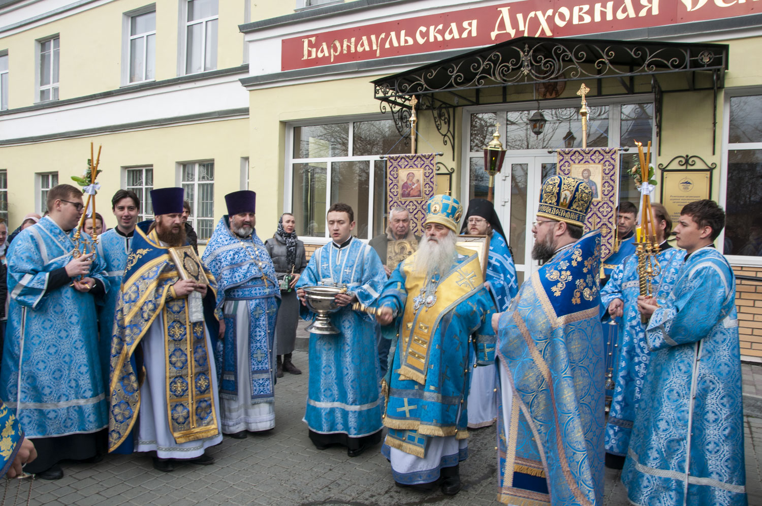 В престольный праздник духовной школы Его Высокопреосвященству сослужили: секретарь Барнаульской епархии, проректор по общим вопросам Барнаульской духовной семинарии архимандрит Иларион (Морозов), врио Ректора Барнаульской духовной семинарии иерей Анатолий Бочкар, первый проректор и проректор по научной работе Барнаульской духовной семинарии протоиерей Георгий Крейдун, проректор по учебной работе иерей Алексий Изосимов, старший помощник проректора по воспитательной работе иеромонах Модест (Илюшин), руководитель службы протокола Барнаульской епархии иерей Олег Берендеев, студенты 3 курса в священном сане диакон Олег Вихлянов и диакон Евгений Максимов.