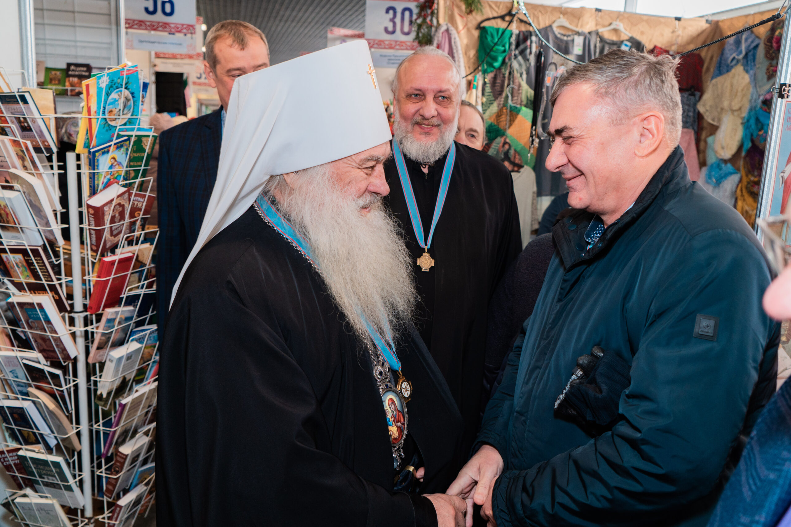 Владыка Сергий по окончании торжественной церемонии осмотрел стенды храмов и монастырей Русской Православной Церкви, на которых представлена их продукция: иконы, духовная литература, ювелирные изделия, облачения, подсвечники, благовония, четки, ювелирные изделия с христианской символикой и многое другое.