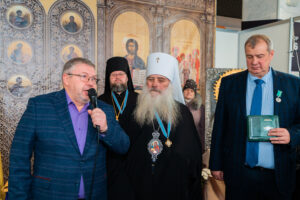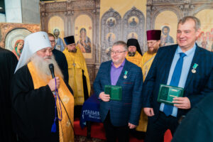 Во внимание к трудам на благо Святой Христовой Церкви и за усердные труды по организации выставки-ярмарки митрополит Сергий отметил наградами Барнаульской епархии – медалью святителя Макария, просветителя Алтая, II степени: директора ООО «Урал. Выставки» Андрея Юрьевича Шварнева и председателя совета директоров ВО «Уральские выставки» Вадима Геннадьевича Завьялова.