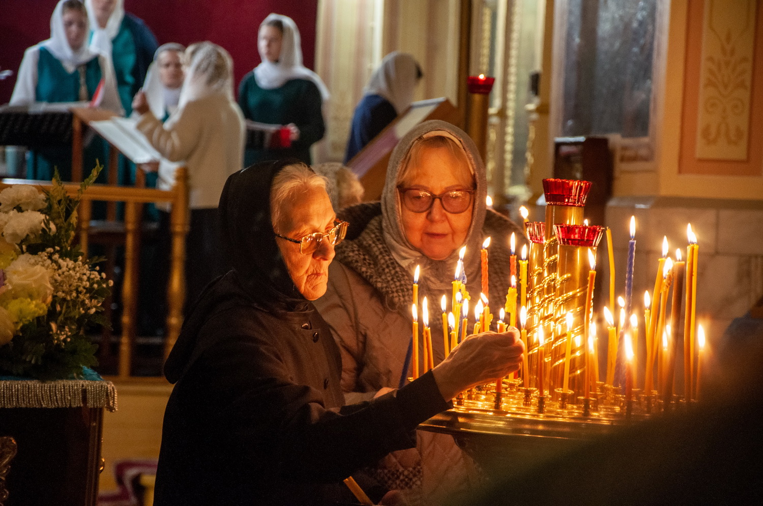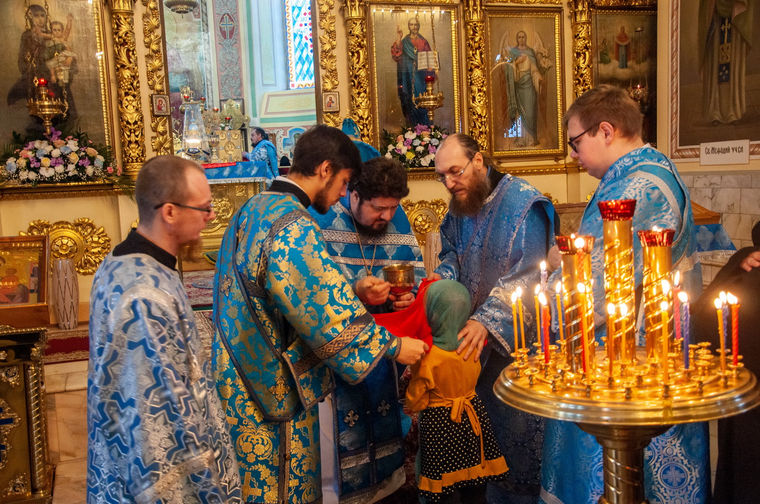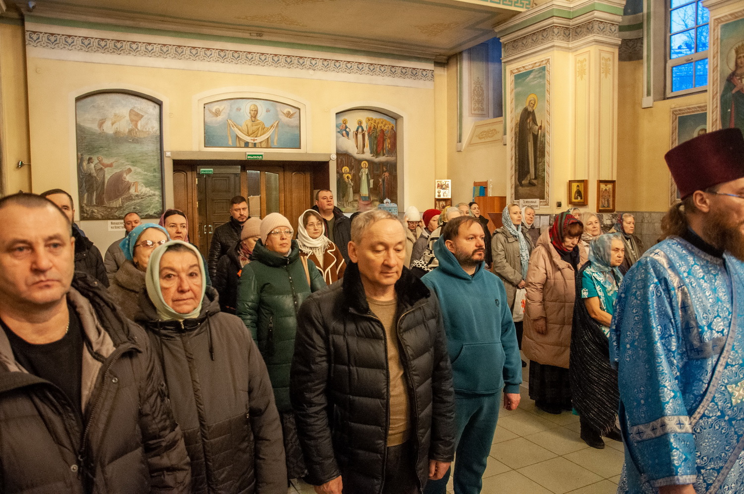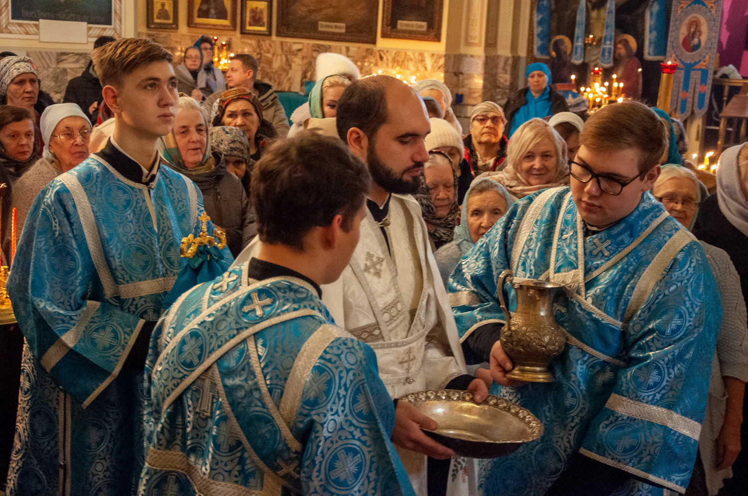После отпуста Литургии у иконы праздника в центре храма было совершено славление. Были пропеты тропарь и кондак Введения во храм Пресвятой Богородицы, после чего все присутствующие за богослужением вместе с духовенством пропели молитву «Царице моя Преблагая» и величание.