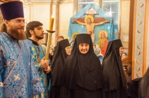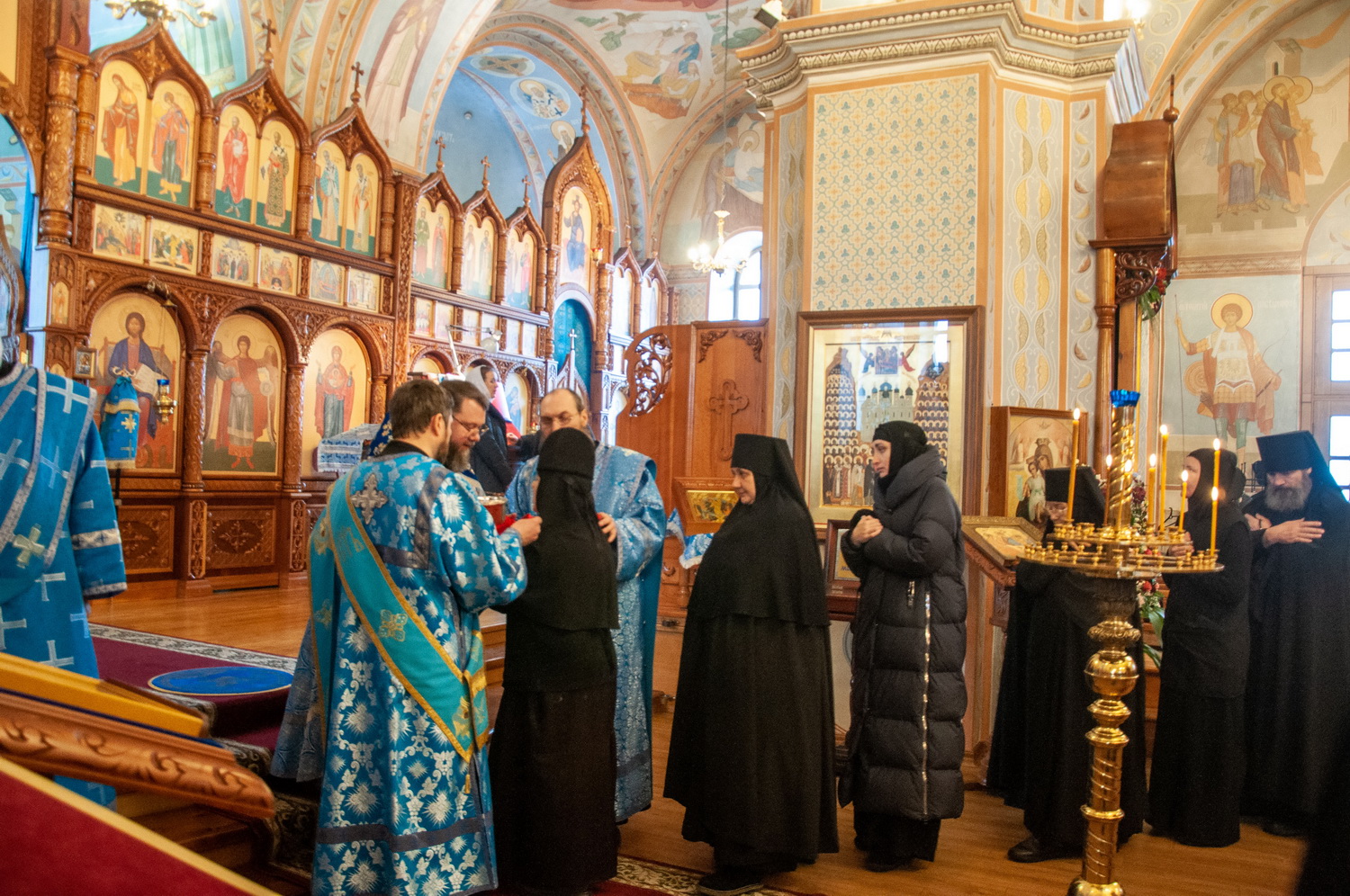 На богослужении молились настоятельница Знаменском женского монастыря игумения Нина (Лебедева), сестры обители и прихожане.