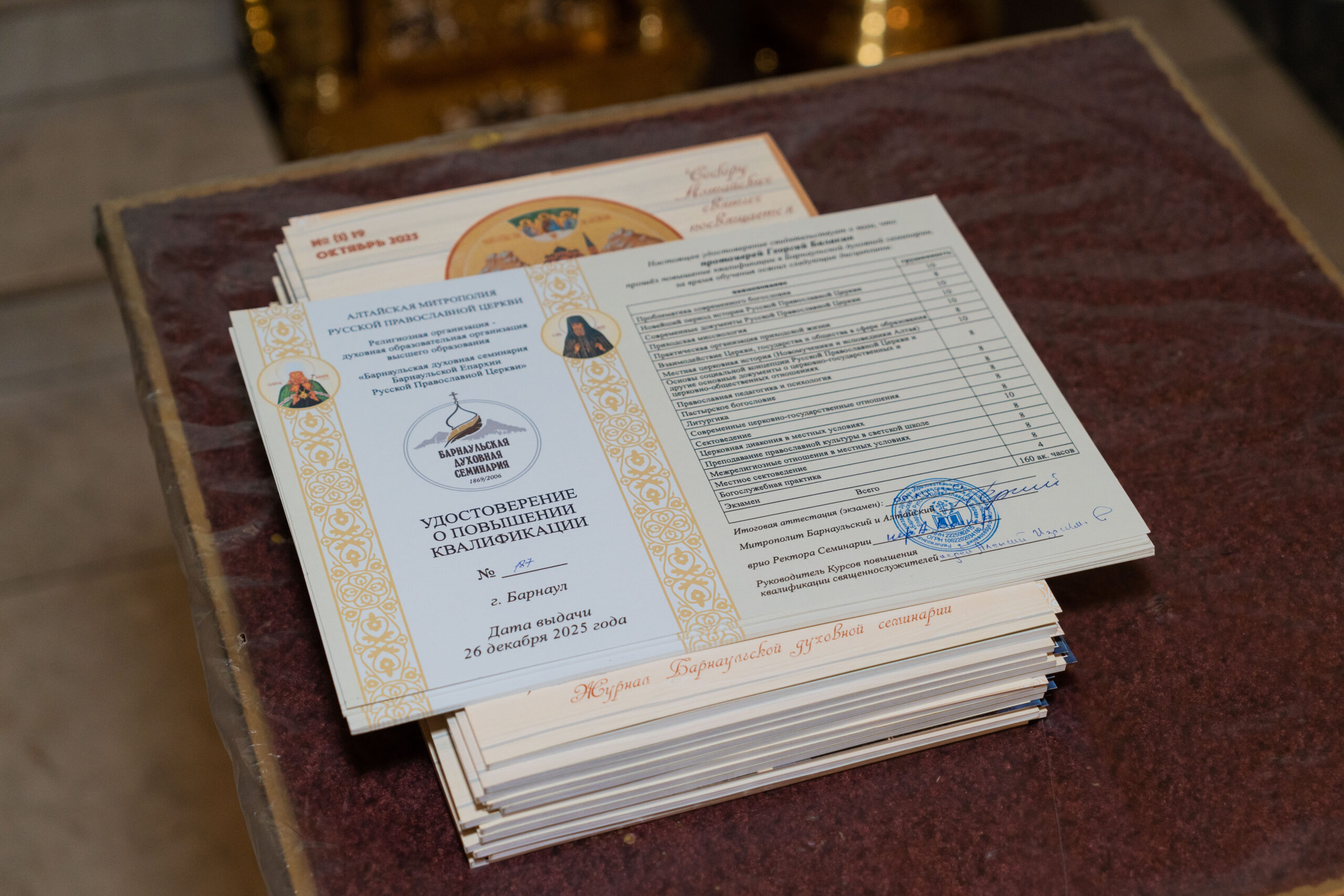 Глава Алтайской митрополии митрополит Барнаульский и Алтайский Сергий вручил удостоверения следующим священнослужителям: