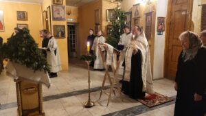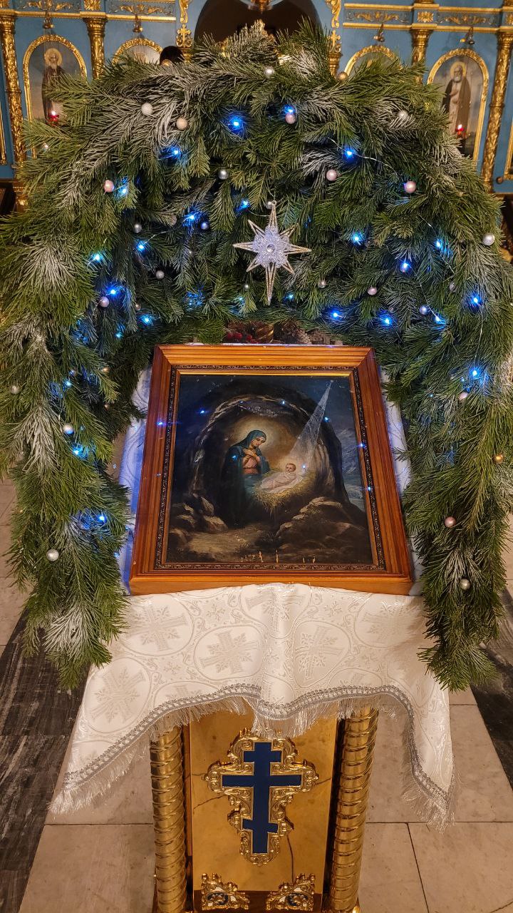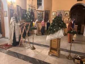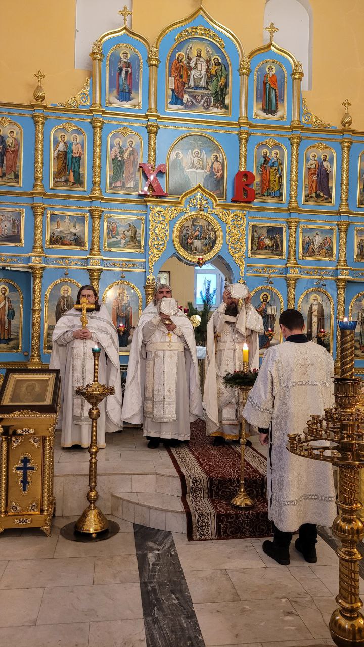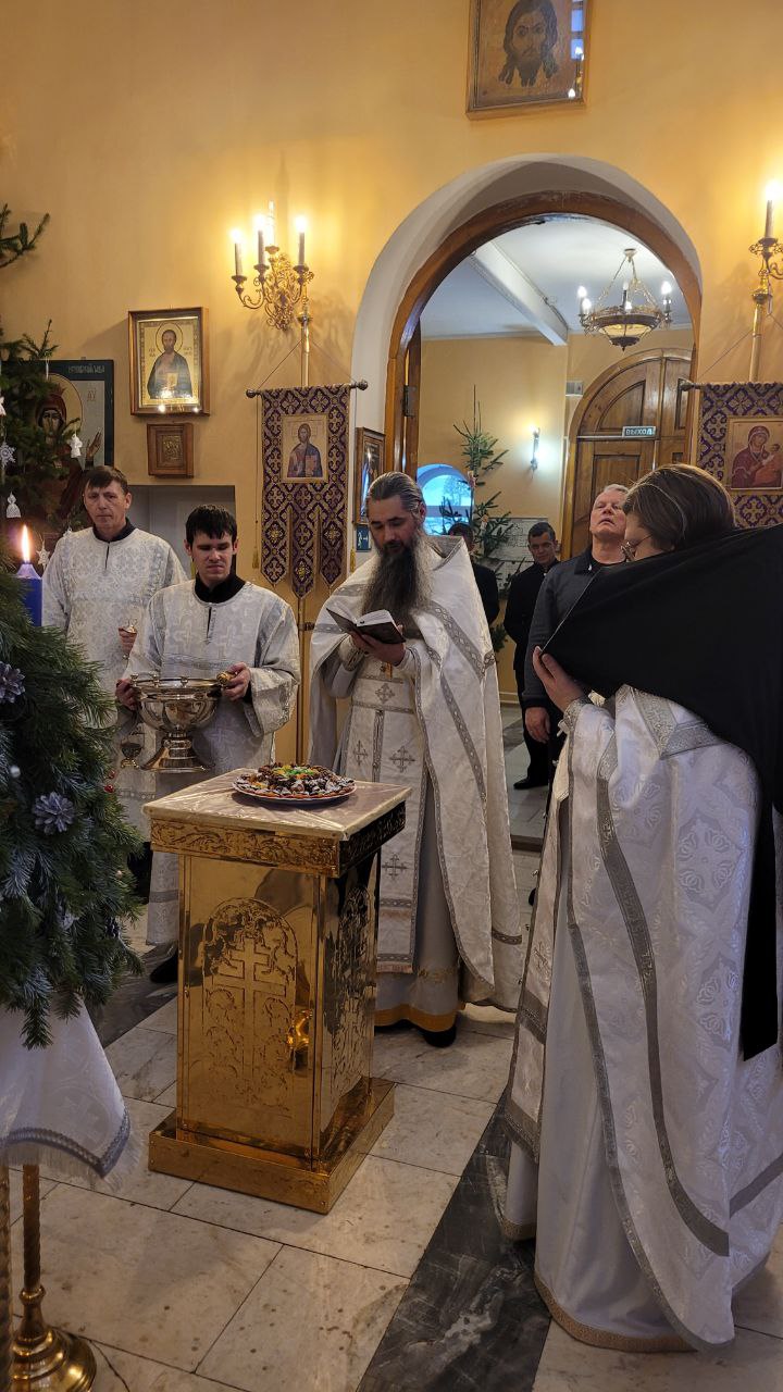 По окончании Царских часов и изобразительных была совершена вечерня праздника Рождества Христова в соединении с Божественной литургией святителя Василия Великого.