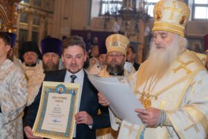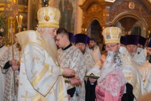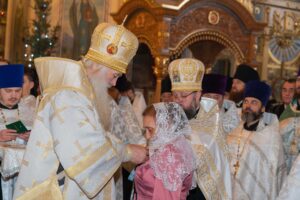 По завершении богослужения священнослужители и миряне поздравили своего архипастыря со светлым праздником Рождества Христова.