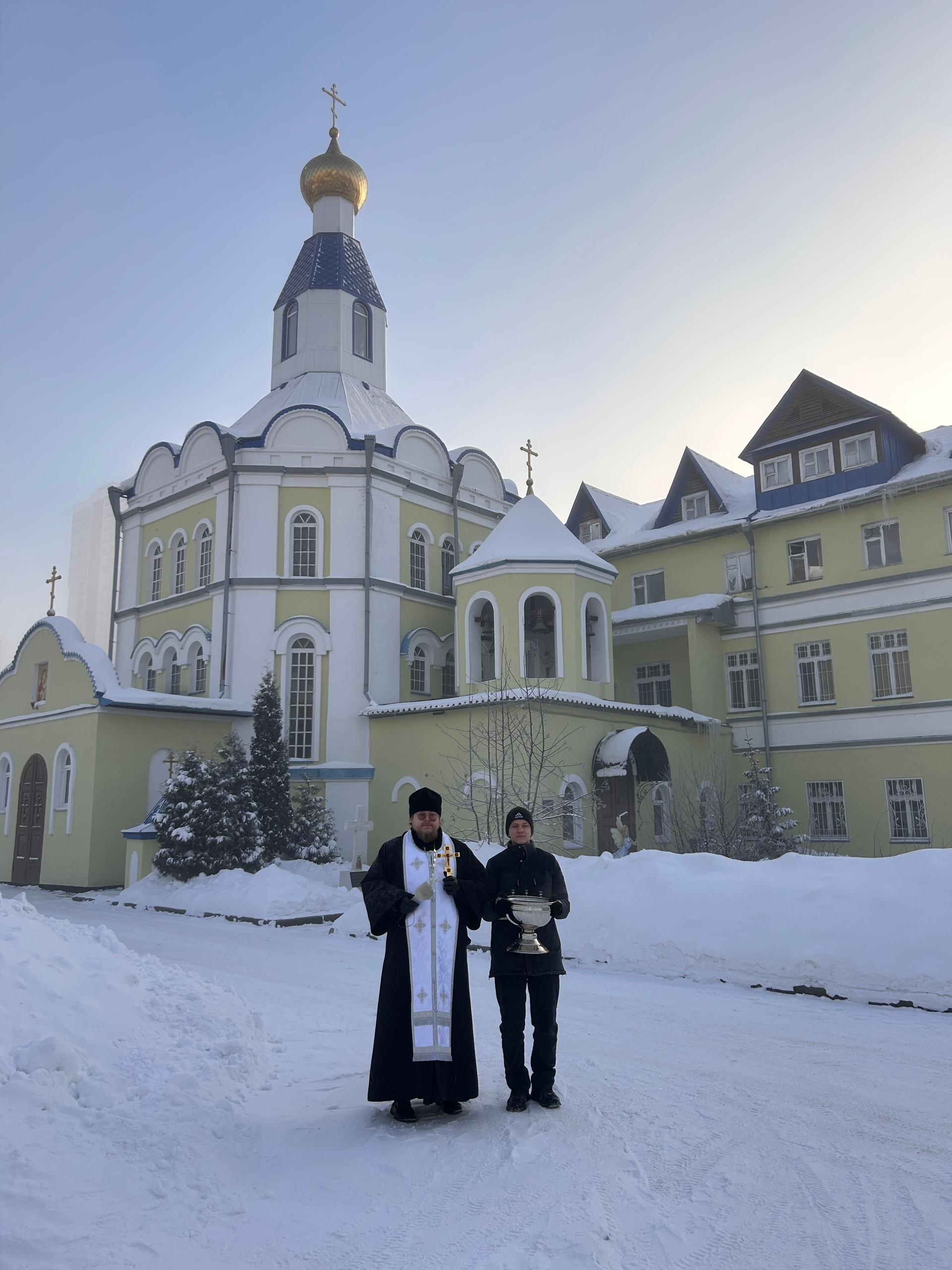 Проректор по учебной работе иерей Алексий Изосимов и старший дежурный помощник проректора по воспитательной работе иеромонах Модест (Илющин) совершили Великое освящение воды.