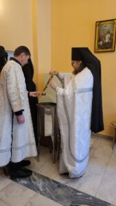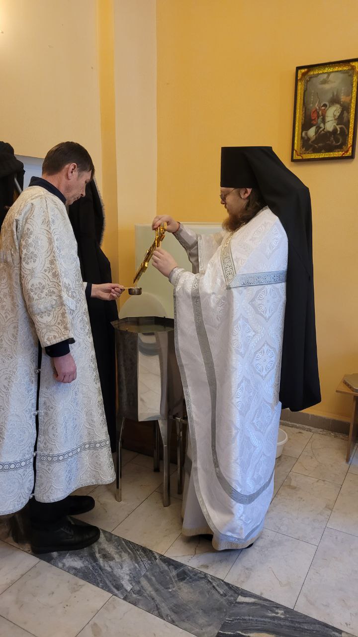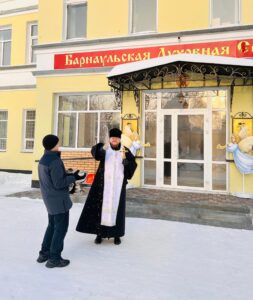 Иеромонах Модест под торжественное пение тропаря Богоявления окропил святой водой храм, трапезную, кабинеты, аудитории, комнаты студентов и иные помещения Барнаульской духовной семинарии.