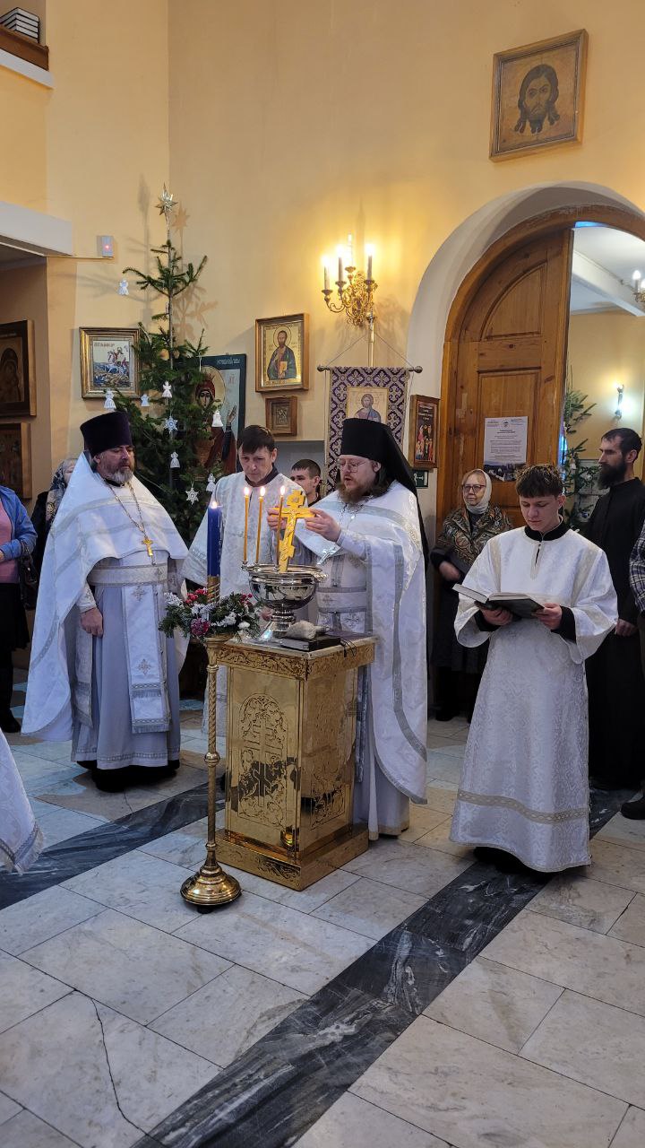 По окончании Божественной литургии святителя Иоанна Златоустого, была совершена Великая вечерня. Во время Великой вечерни собравшиеся услышали чтение тринадцати паремий, в которых раскрывалось то, как совершается действие благодати Божией через воду.