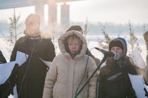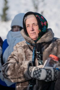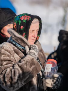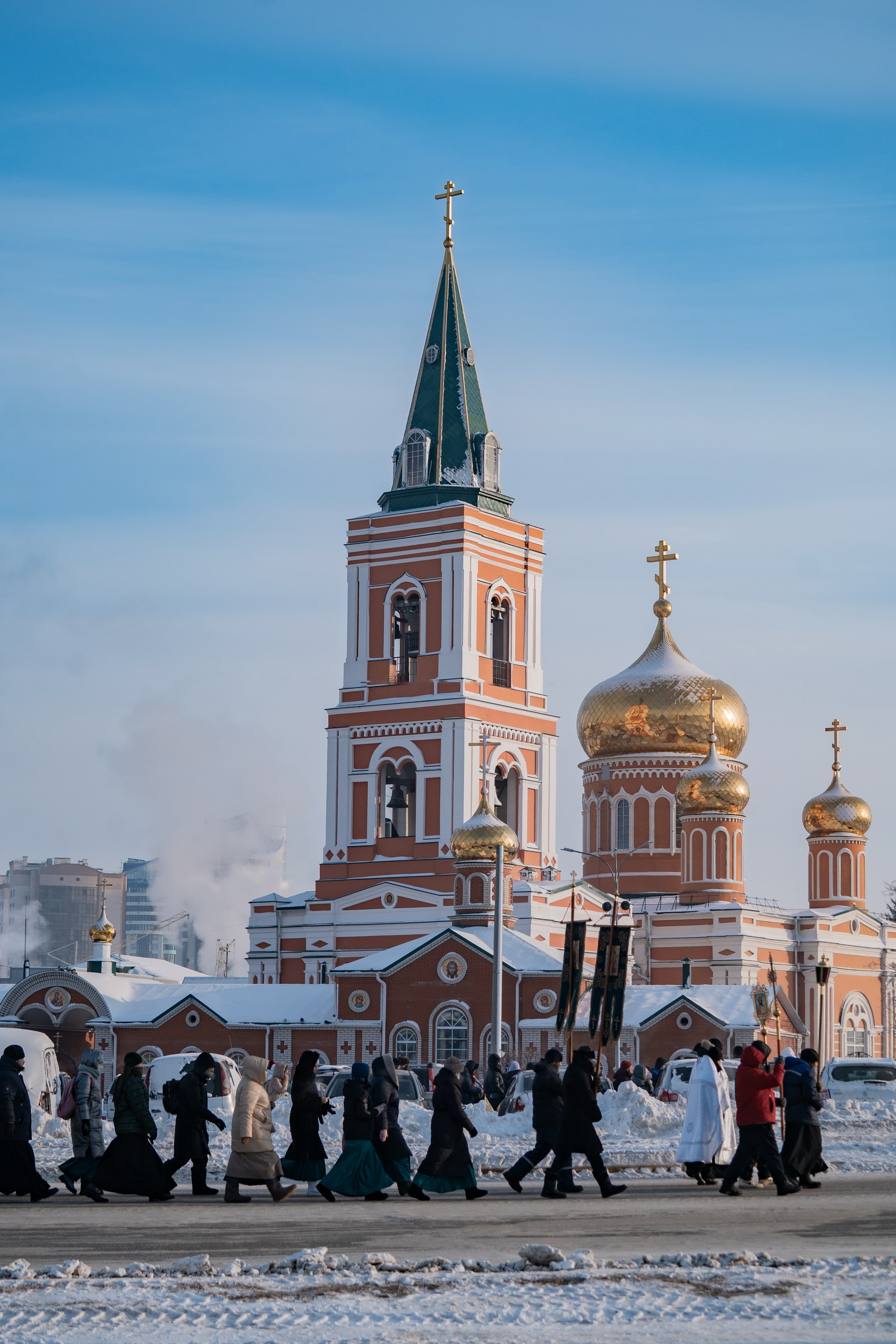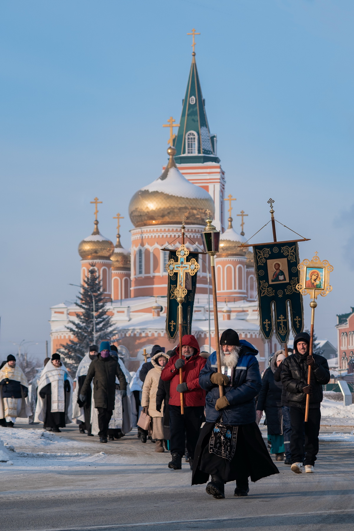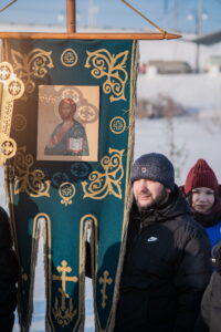 На берегу Оби городские власти построили снежную часовню, а прямо на льду реки расчистили от снега просторную площадку, огородили ее снежным валом и елочками. На площадке поставили большой ледяной крест выше человеческого роста, во льду прорубили в виде креста иордань для освящения воды, а неподалеку построили купель в виде деревянных ступенек, сходящих в воду, с перилами, для купания в крещенской воде, где в целях обеспечения безопасности дежурили спасатели. Рядом с купелью поставили две синие будки для переодевания братьев и сестер, желающих совершить погружение. Кроме священнослужителей, выстроившихся на льду двумя шеренгами, здесь присутствовали хоругвеносцы, журналисты, казаки, врачи и сотрудники полиции. Остальные участники крестного хода в целях безопасности остались на берегу.