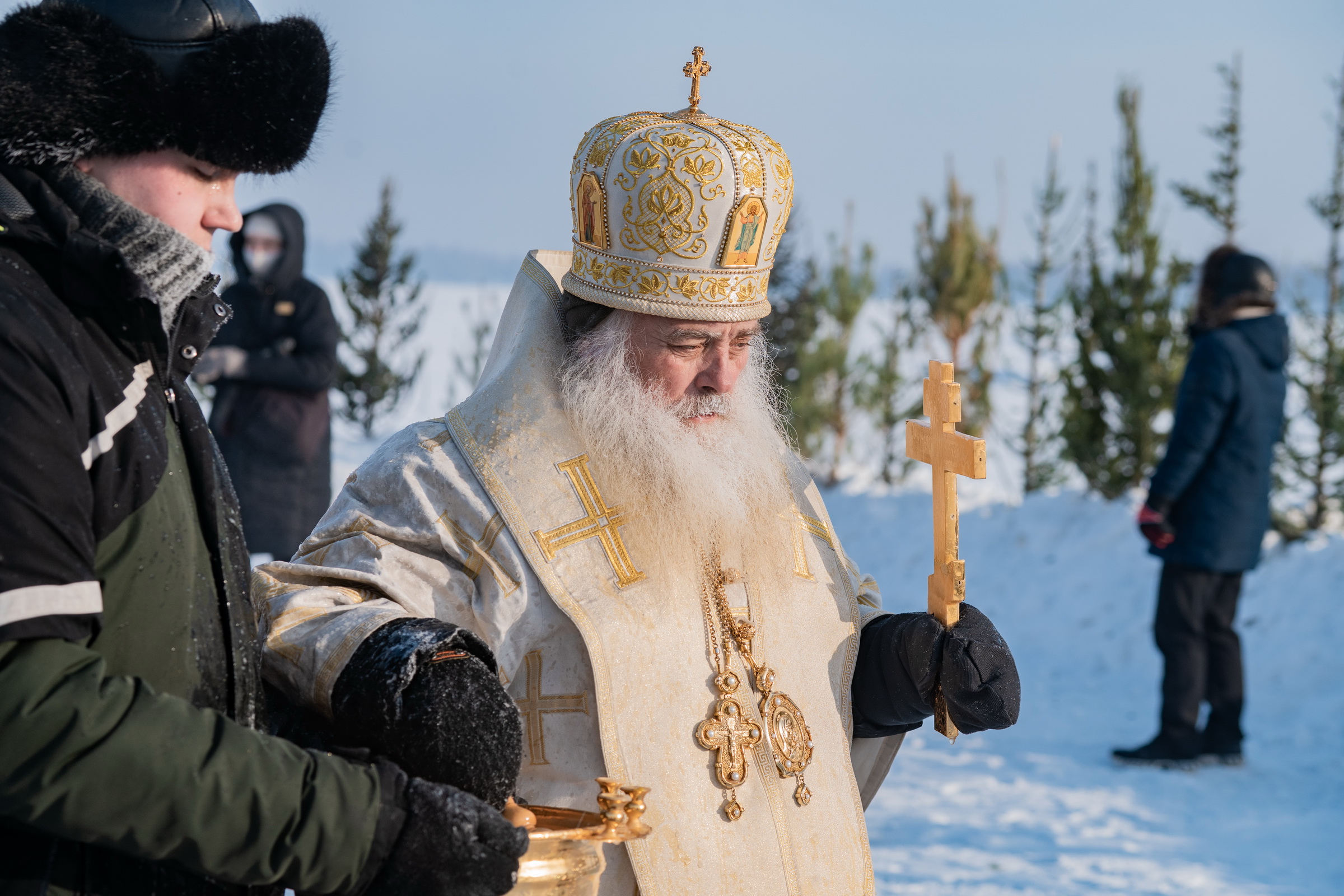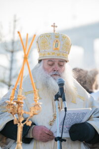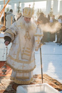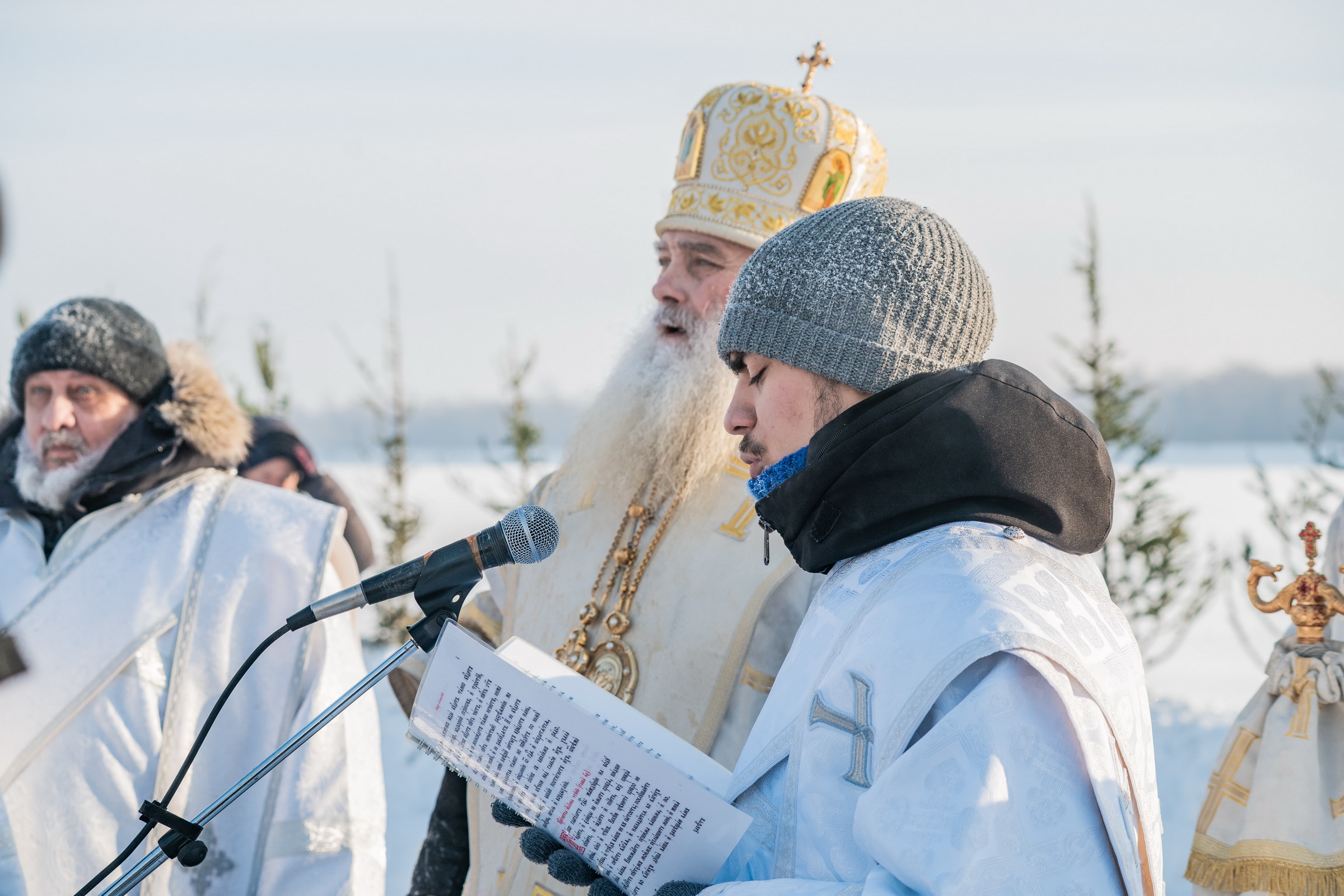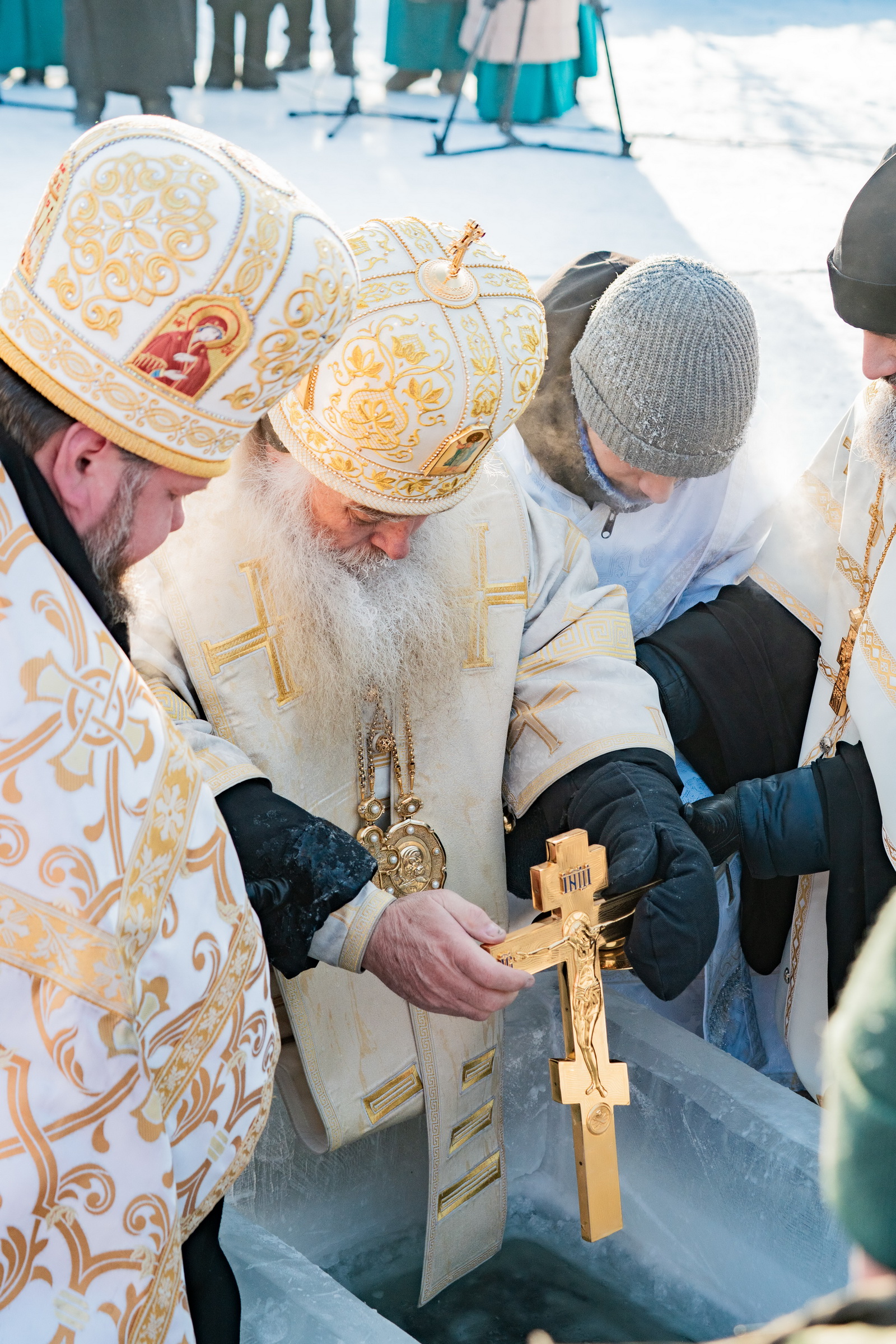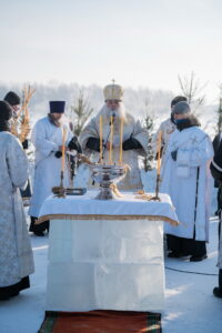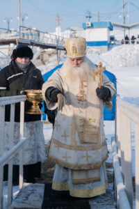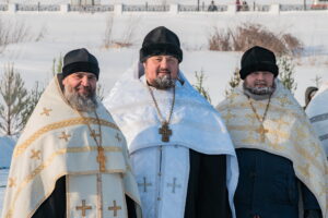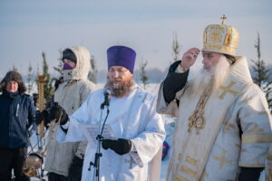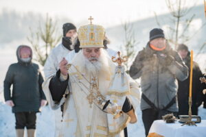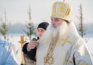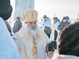 В иордани митрополит Сергий в сослужении священнослужителей совершил чин великого освящения обской воды.