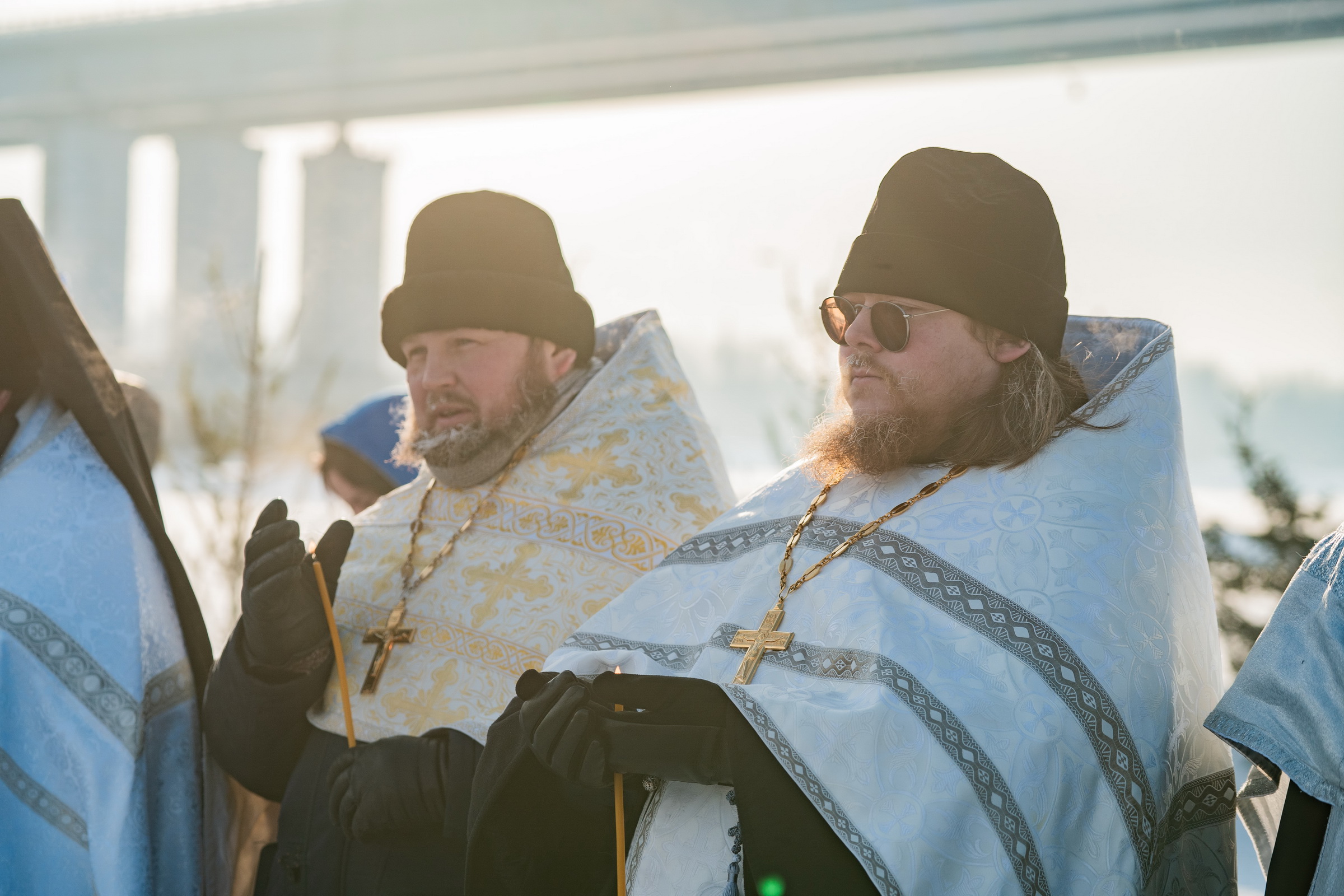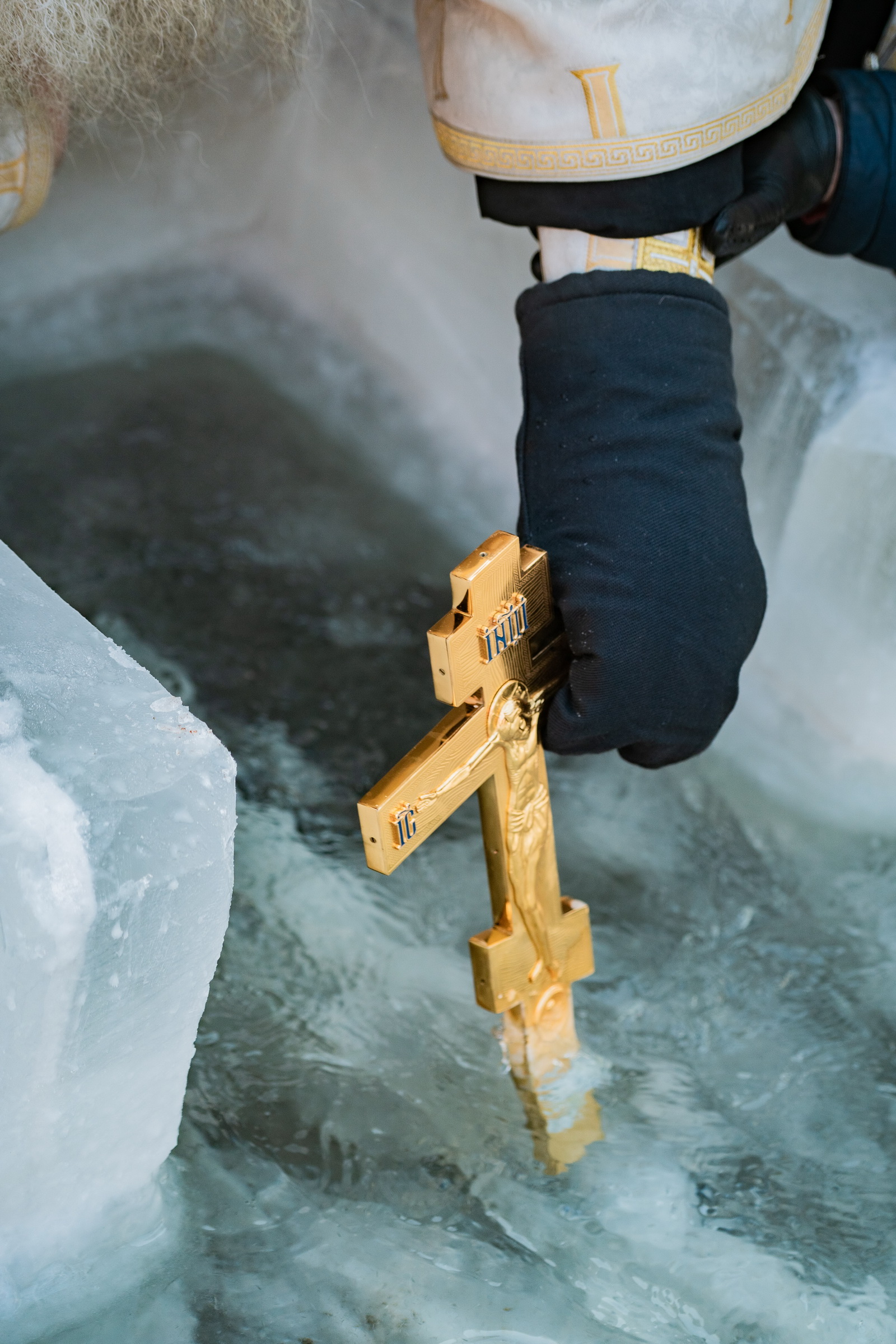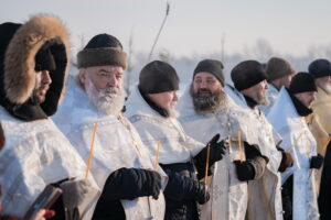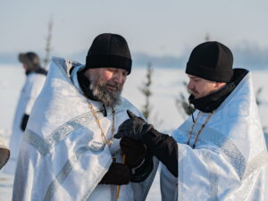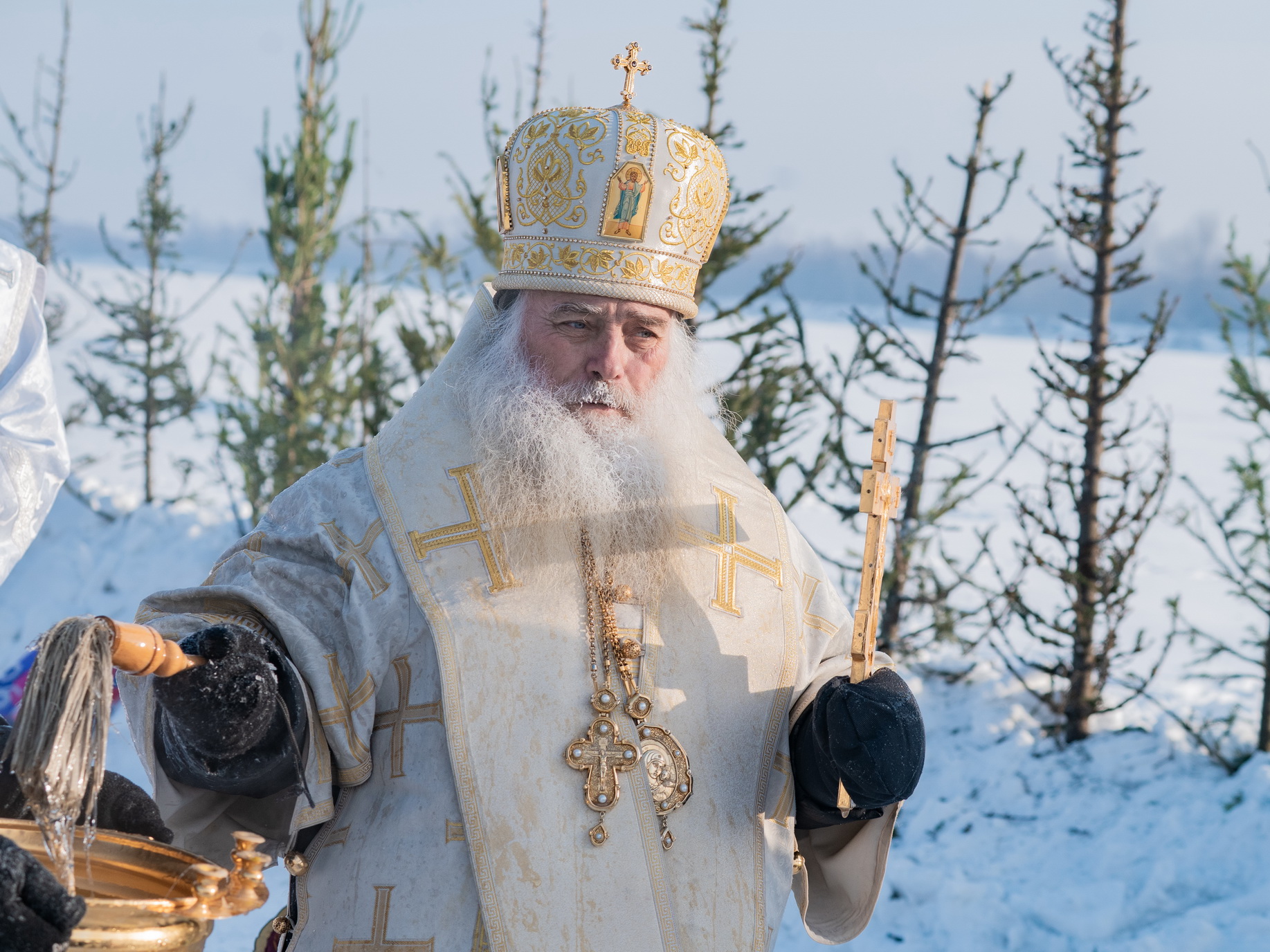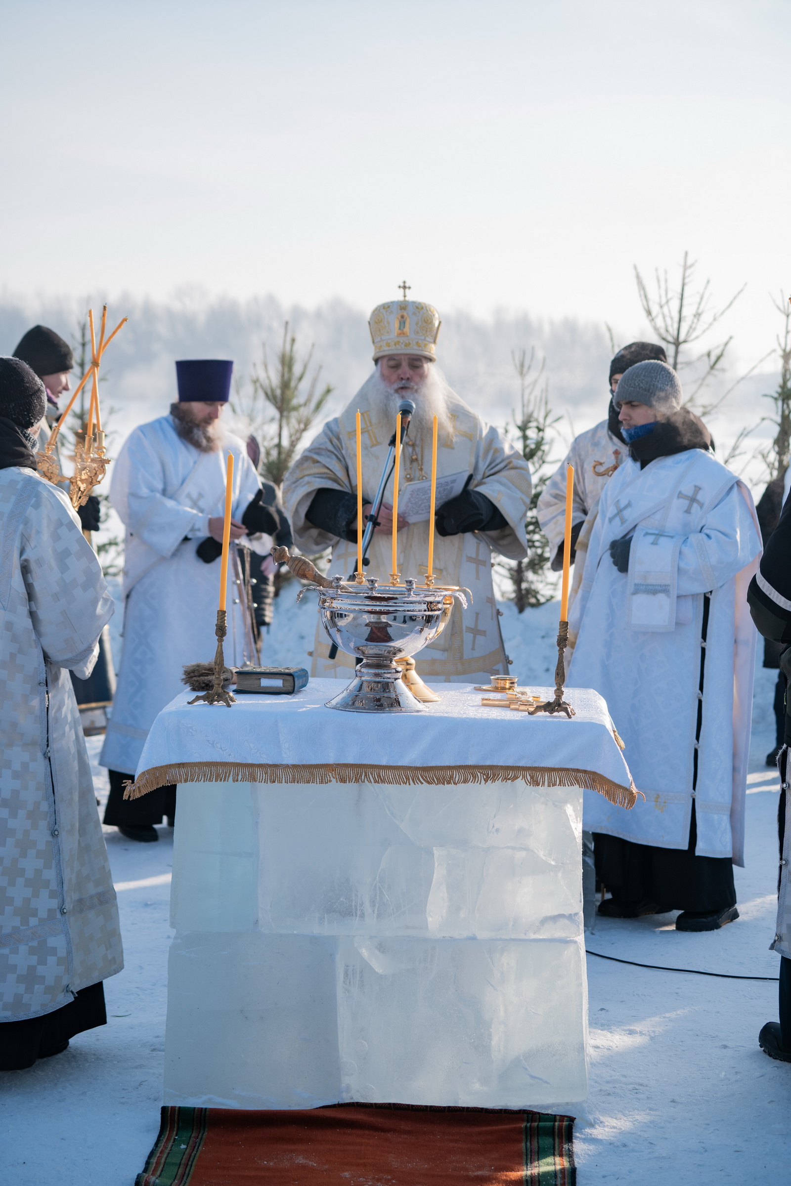 В иордани митрополит Сергий в сослужении священнослужителей совершил чин великого освящения обской воды.