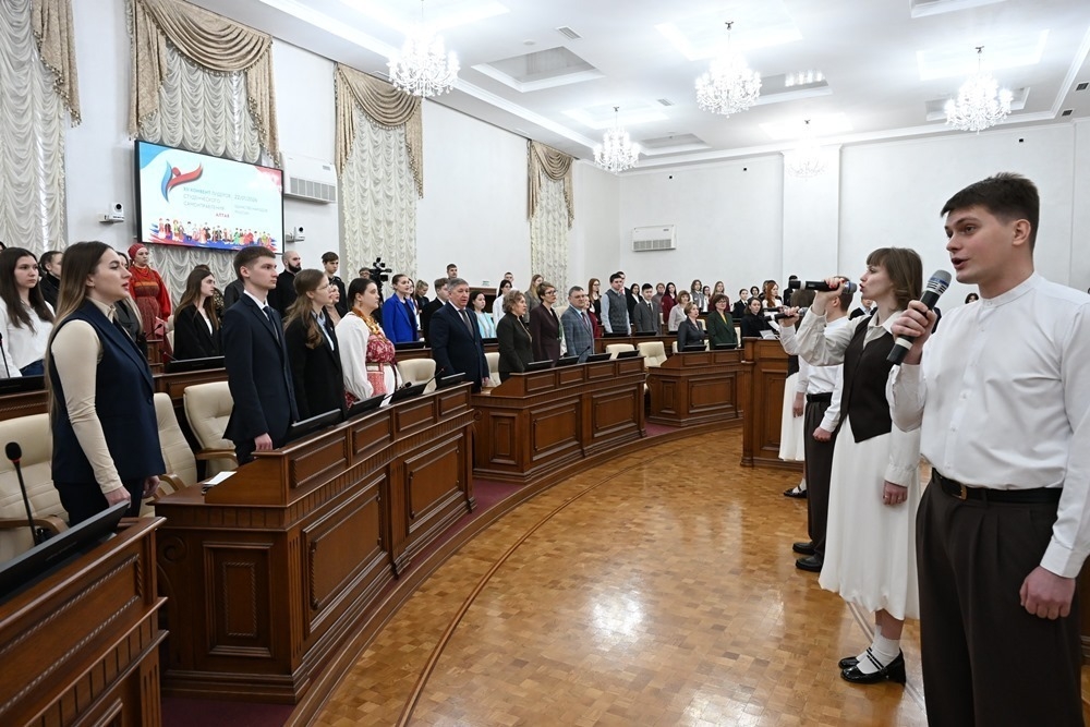 XII Конвент лидеров студенческого самоуправления открыл председатель Алтайского краевого Законодательного Собрания Александр Романенко. Он напомнил, что 2026 год по инициативе Президента страны стал Годом единства народов России, а Конвент дает старт многим интересным и масштабным проектам, которые пройдут в крае в ближайшие месяцы и будут посвящены этой теме.